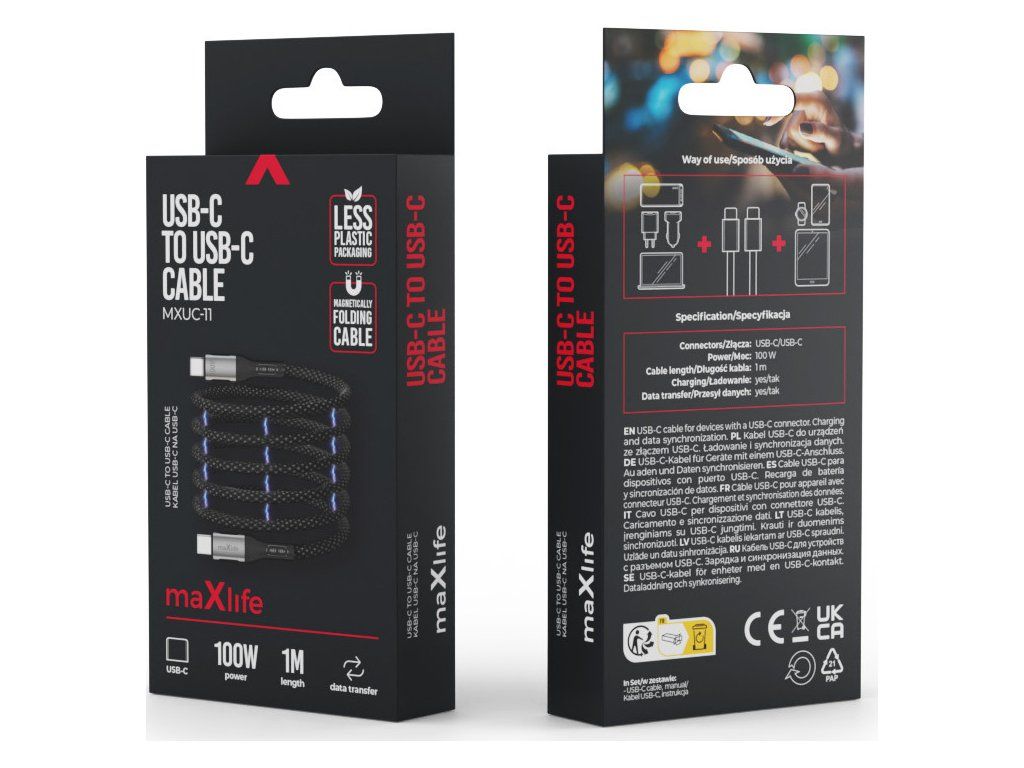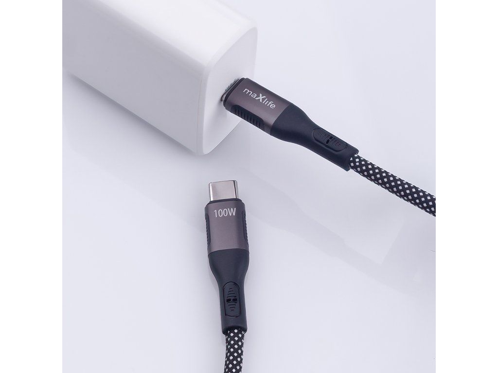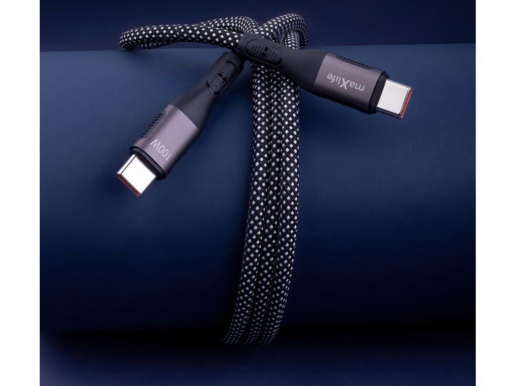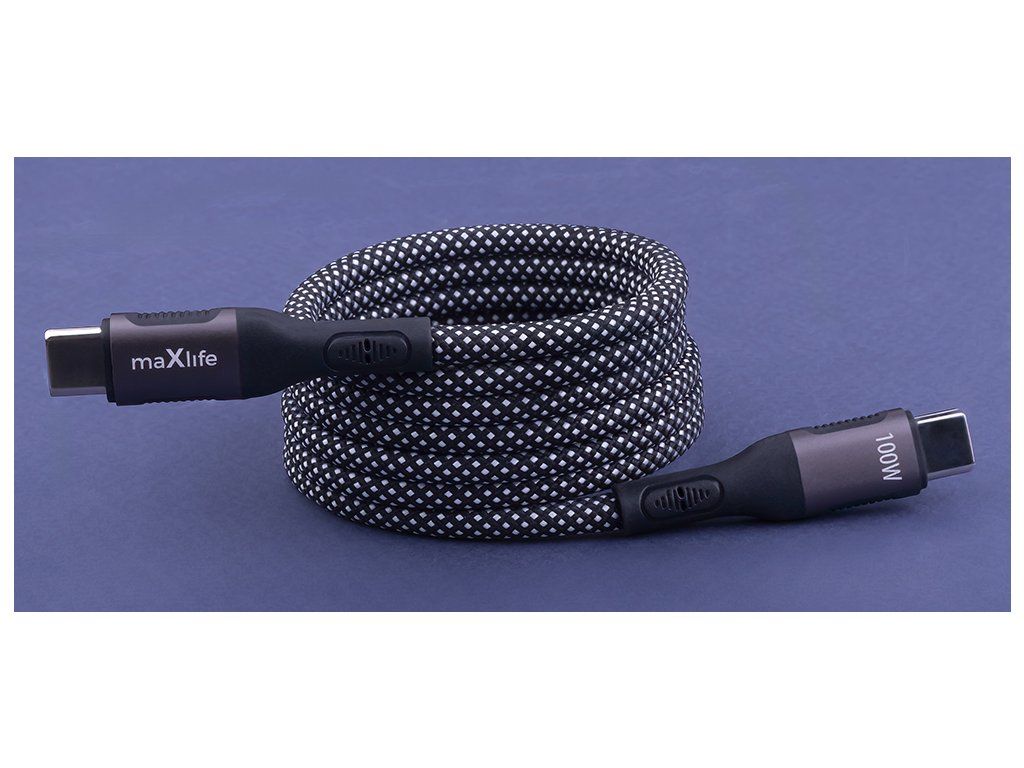 Magnetický kabel Maxlife MXUC-11 USB-C - USB-C 1,0 m 100W černý nylon