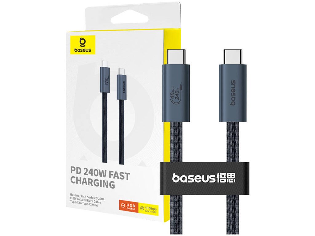 Kabel Baseus Flash 2 nejen rychle nabíjí zařízení, ale také umožňuje bleskový přenos dat rychlostí 40 GB/s. To je vynikající řešení pro přenos souborů a používání periferních zařízení.