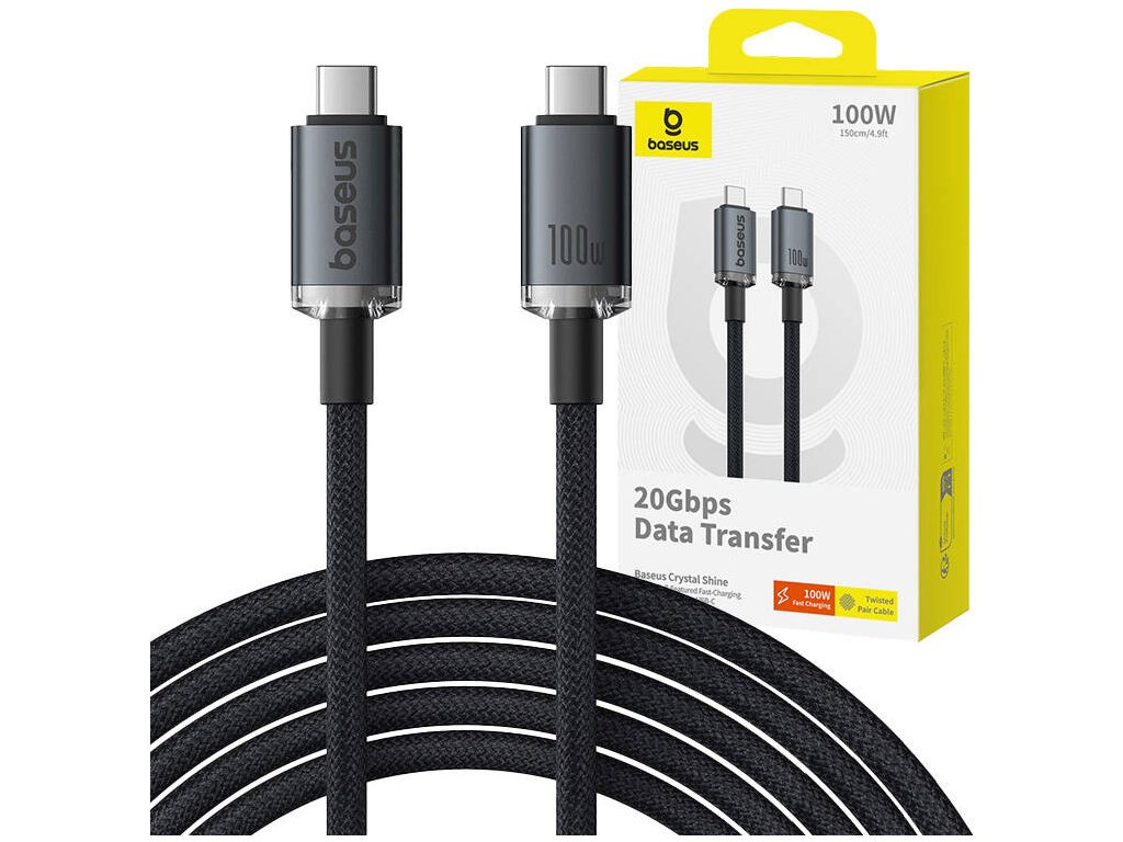 Baseus Crystal Shine 100W kabel USB-C na USB-C, 1,5 m 20Gb (černý)