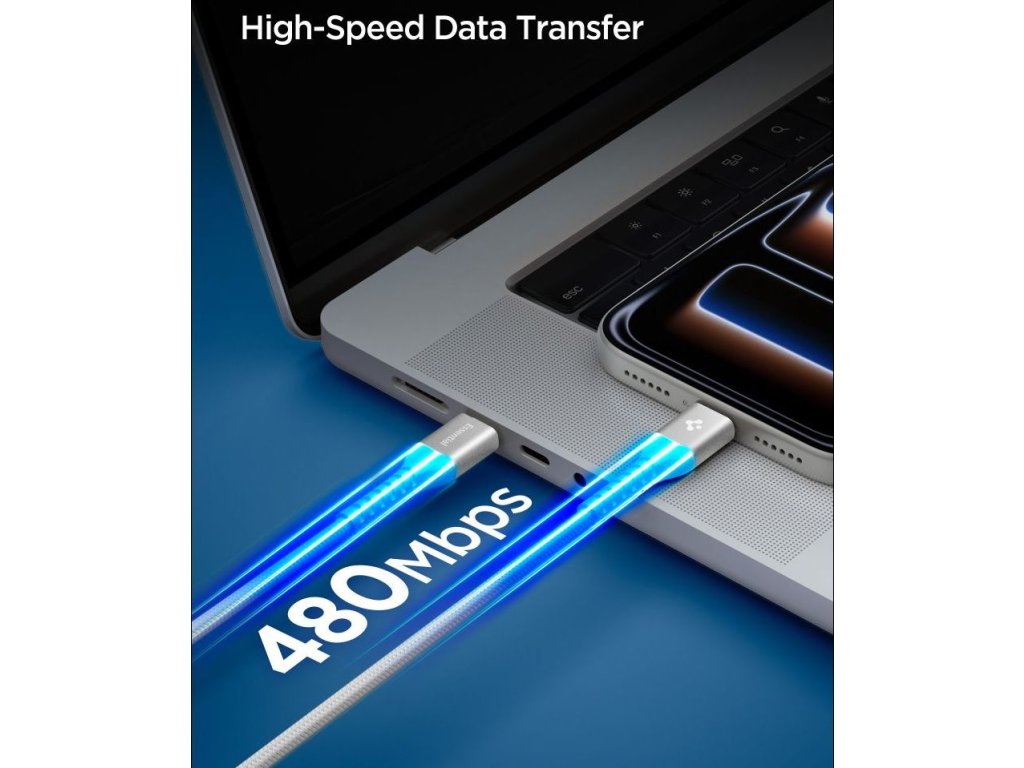 Základní kabel Spigen EB10010CCA je univerzální 100cm kabel USB-C, který podporuje nabíjení výkonem až 100 W a rychlost přenosu dat až 480 Mb/s. Díky vysokému výstupnímu výkonu je kabel ideální pro rychlé nabíjení chytrých telefonů, tabletů a notebooků s portem USB-C. Současný přenos dat umožňuje pohodlný přenos souborů mezi zařízeními během nabíjení, čímž eliminuje potřebu více kabelů.