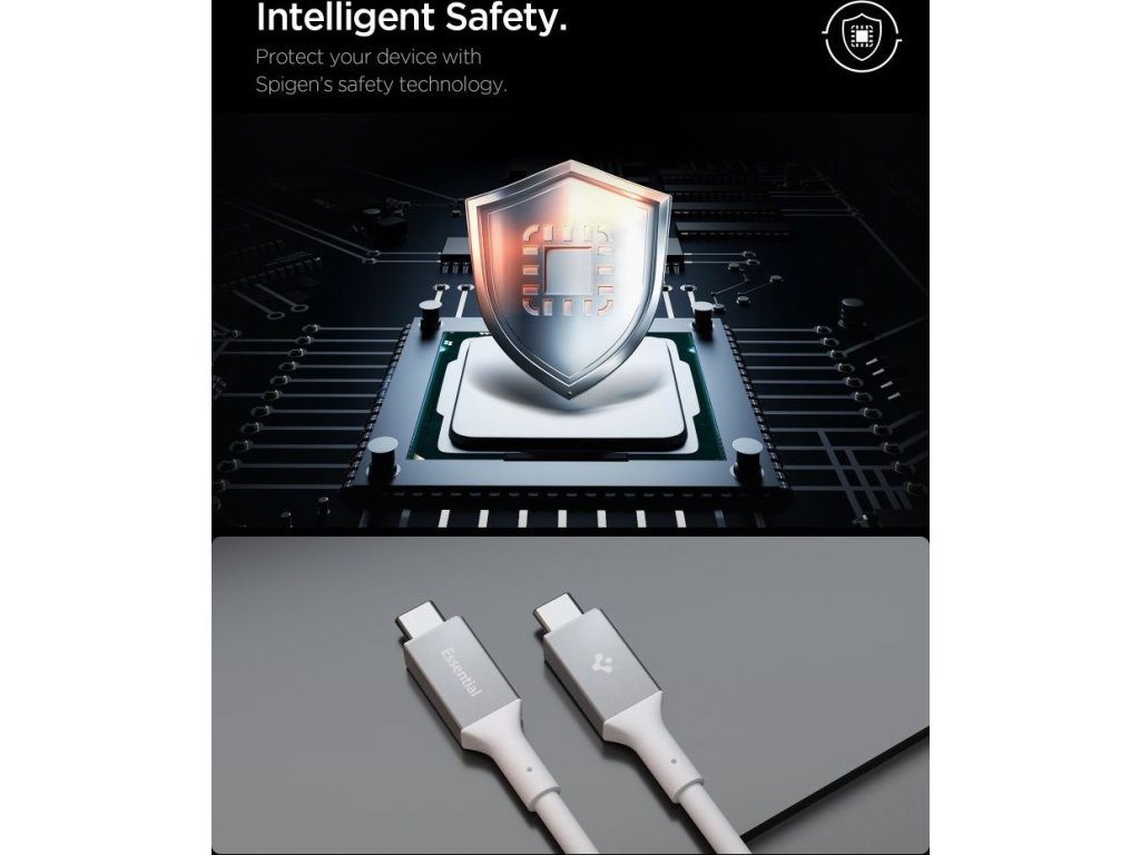 Spigen Essential EB24012CC je vysoce kvalitní nabíjecí a datový kabel určený pro nejnáročnější zařízení s USB-C konektorem – od chytrých telefonů a tabletů až po notebooky. Kabel podporuje nabíjení Power Delivery až do 240 W, což umožňuje rychlé a stabilní nabíjení zařízení s vysokými nároky na napájení.
