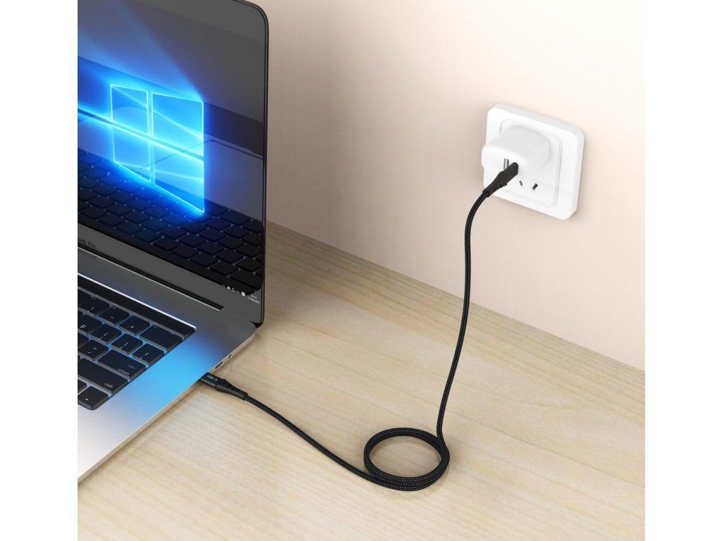 Délka 100 cm zajišťuje volnost používání, ať už u stolu nebo při nabíjení ze zásuvky u postele či gauče – kabel dosáhne i tam, kam kratší verze selhávají. Textilní opletení chrání kabel před mechanickým poškozením, jako jsou přepětí a opakované ohýbání, a výrazně prodlužuje jeho životnost.