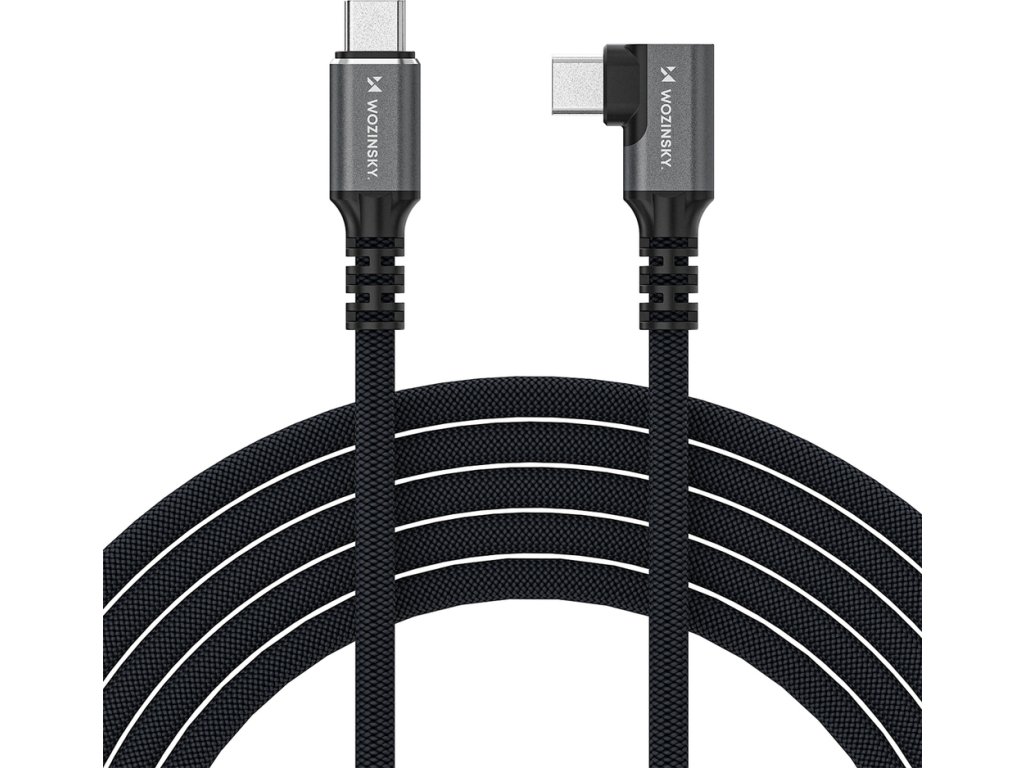 Wozinsky USB-C Thunderbolt 4 240W 2m 4K úhlový USB kabel - černý