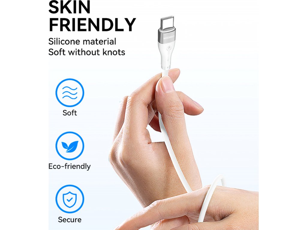 Minimalistický styl a silikonová konstrukce kabelu Wozinsky WSTCC 2 Spojují eleganci s funkčností. Silikon je nejen odolný materiál, ale také flexibilní a snadno se čistí, což kabelu dává pohodlné každodenní používání.