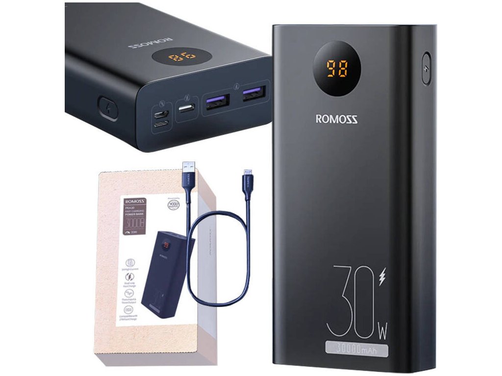 Nabíjejte své vybavení rychle a bezpečně. Powerbanka Romoss PEA30 vyniká kapacitou 30 000 mAh a rychlým nabíjením díky 30 W. Navíc můžete nabíjet 3 zařízení najednou díky portům USB x2 a USB-C. Navíc splňuje bezpečnostní normy, takže se nemusíte bát poškození svého zařízení.