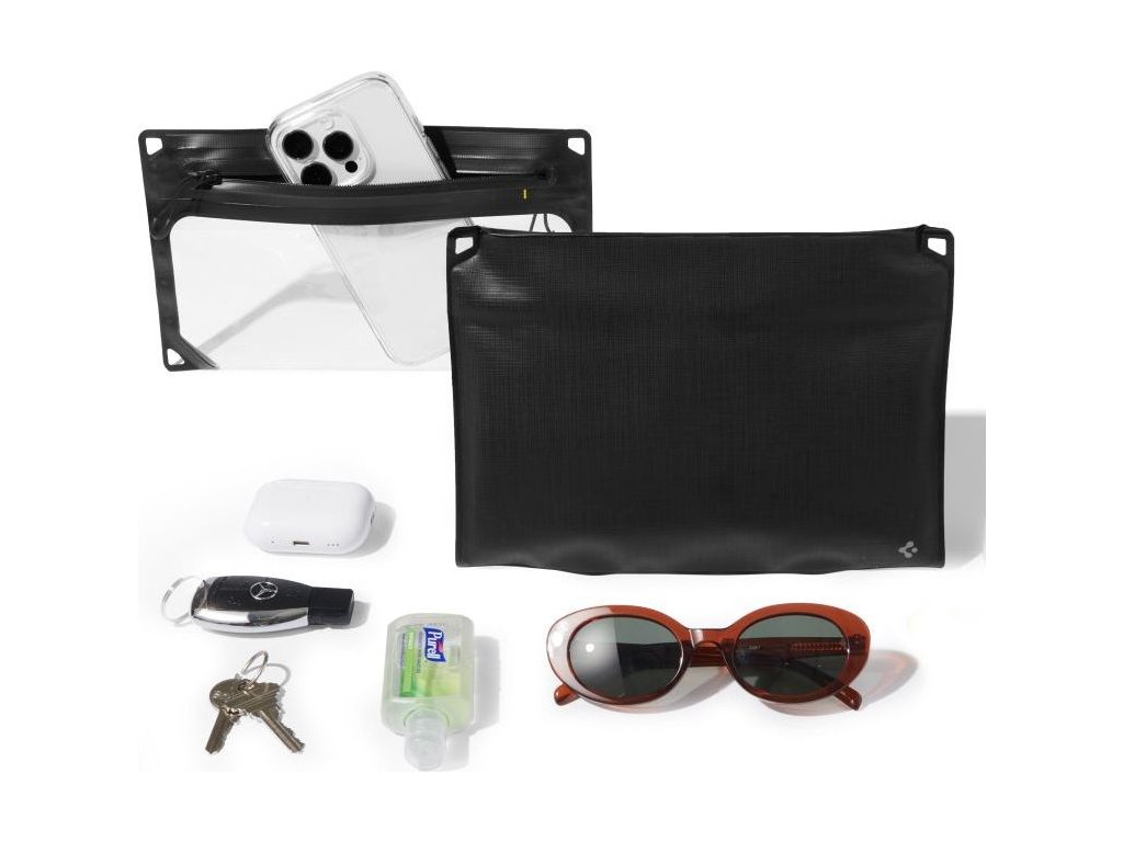 Vyhrazené přihrádky zajišťují pohodlnou organizaci – oddělené prostory pro váš smartphone a nezbytnosti umožňují snadný přístup k příslušenství a organizaci. Kompatibilita s dotykovou obrazovkou a průhledný design fotoaparátu vám umožňují používat telefon a fotografovat, aniž byste jej museli vyjímat z pouzdra.