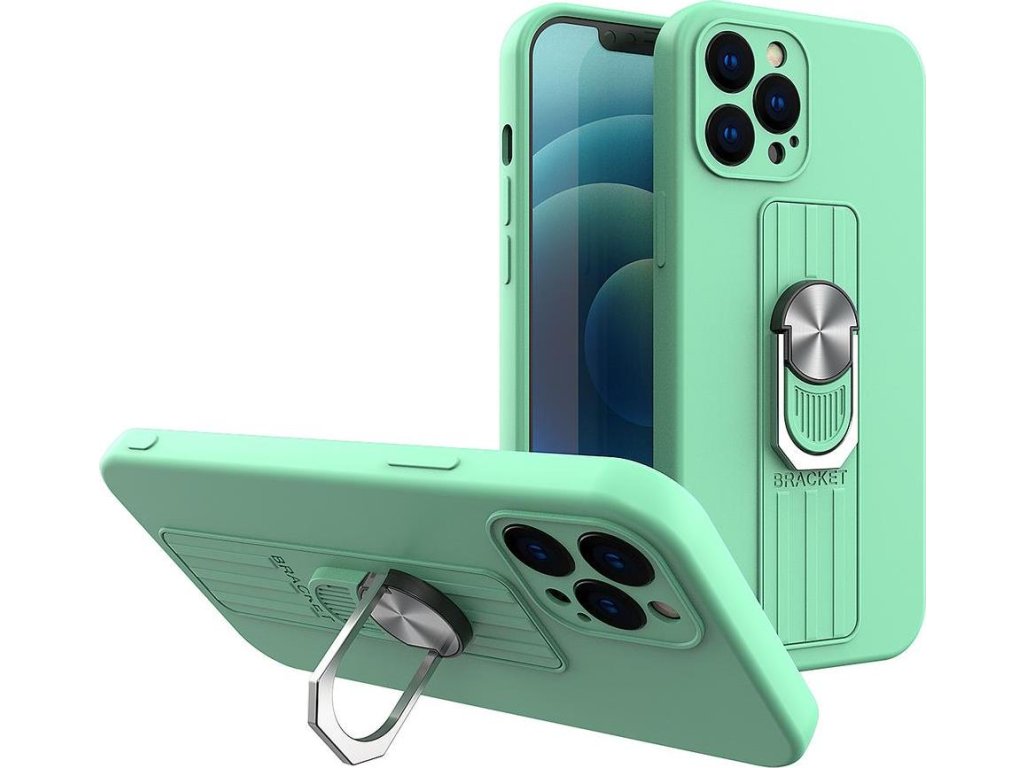 Silikonový kryt Ring Case s úchopem pro prsty a stojánkem pro iPhone 11 Pro Max, mátová barva