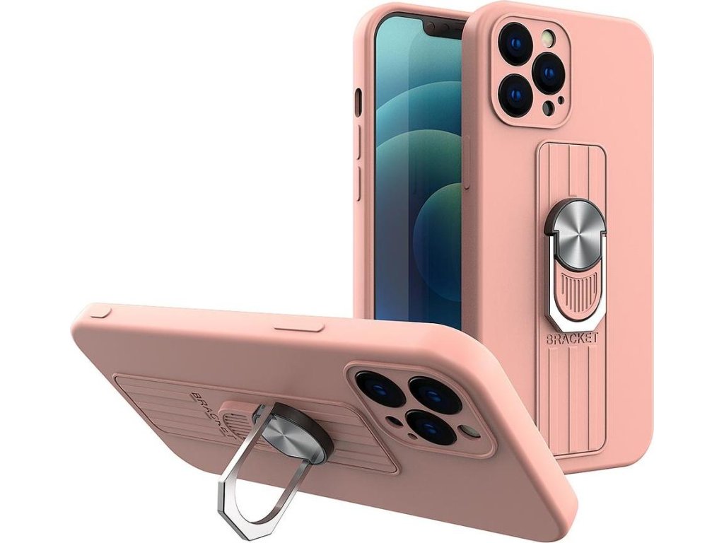 Silikonový kryt Ring Case s úchopem pro prsty a stojánkem pro iPhone 12 Pro růžový