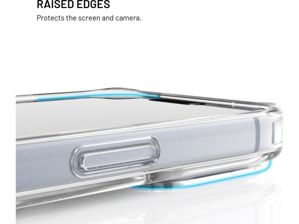 Zvýšené okraje v rozích na zadní straně krytu poskytnou dodatečnou ochranu při položení na stůl, stejně tak je díky zvýšeným okrajům po obvodu chráněný displej.