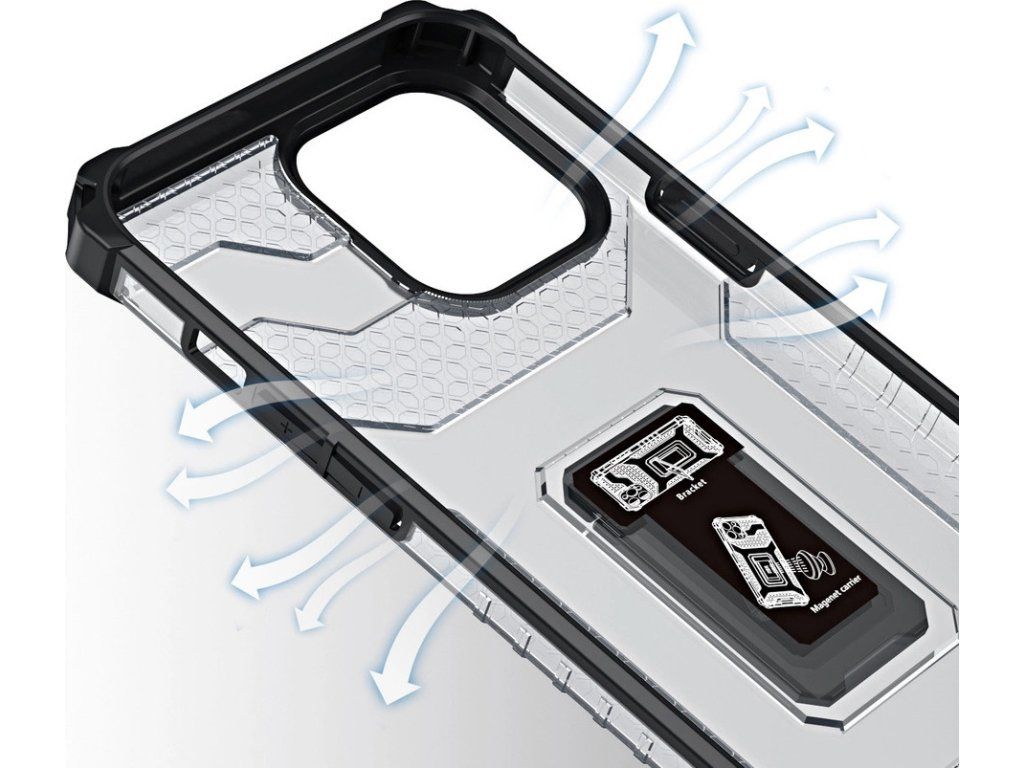 Hybridní pancíř Crystal Ring Case + magnetický držák Hybridní ochranné pouzdro Dvoudílný design - Nárazuvzdorné TPU pouzdro je vyztuženo pevnou polykarbonátovou (PC) vrstvou .