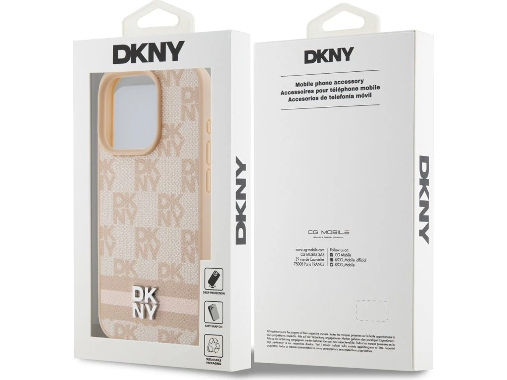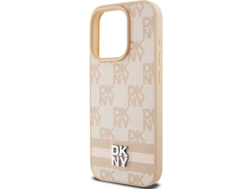 DKNY PU Leather Checkered Pattern and Stripe Zadní Kryt pro iPhone 13 Pro Max Pink