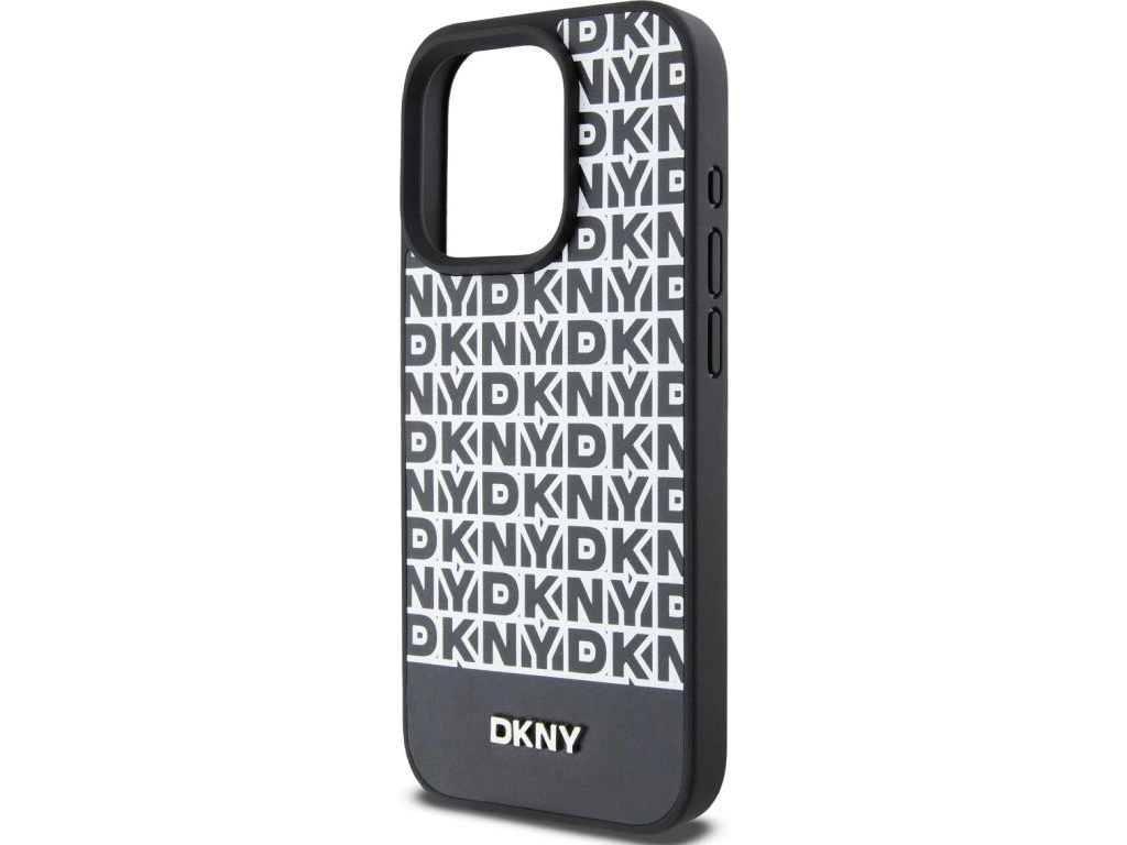 DKNY PU Leather Repeat Pattern Bottom Stripe MagSafe Zadní Kryt pro iPhone 13 Pro Max Black