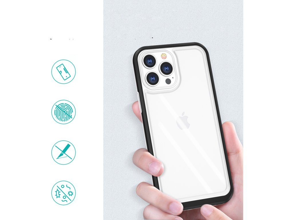 Průhledný gelový kryt 3v1 pro iPhone 13 Pro Max s rámečkem černý