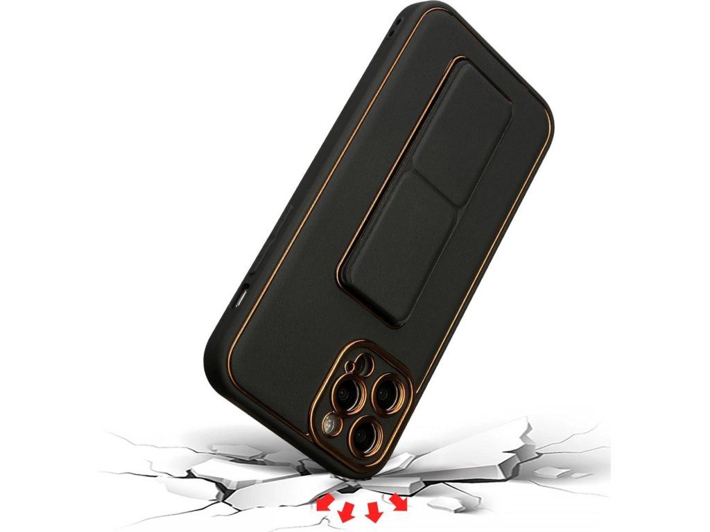 - Pohodlně padne do ruky a neklouže. Pouzdro má protiskluzový povrch a vestavěný stojánek, který lze použít i jako rukojeť.