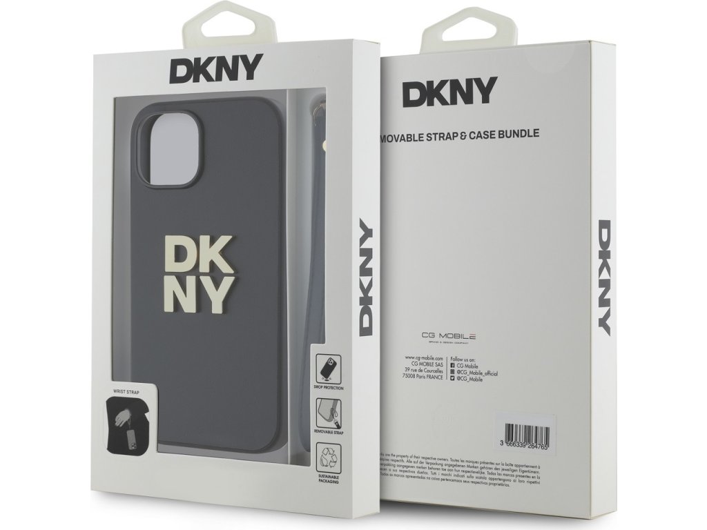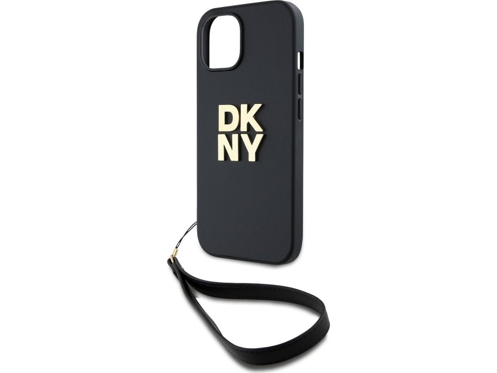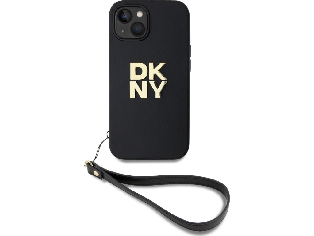 DKNY PU Leather Stack Logo Wrist Strap Zadní Kryt pro iPhone 13 Black