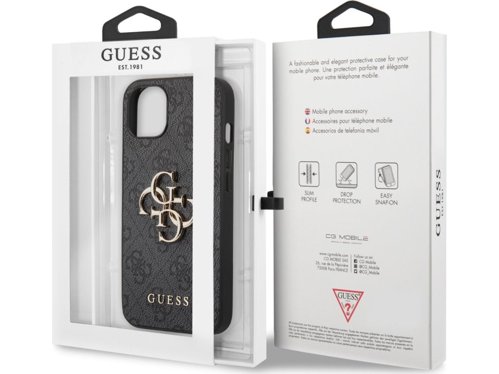 Guess PU 4G Metal Logo Zadní Kryt pro iPhone 13 Grey