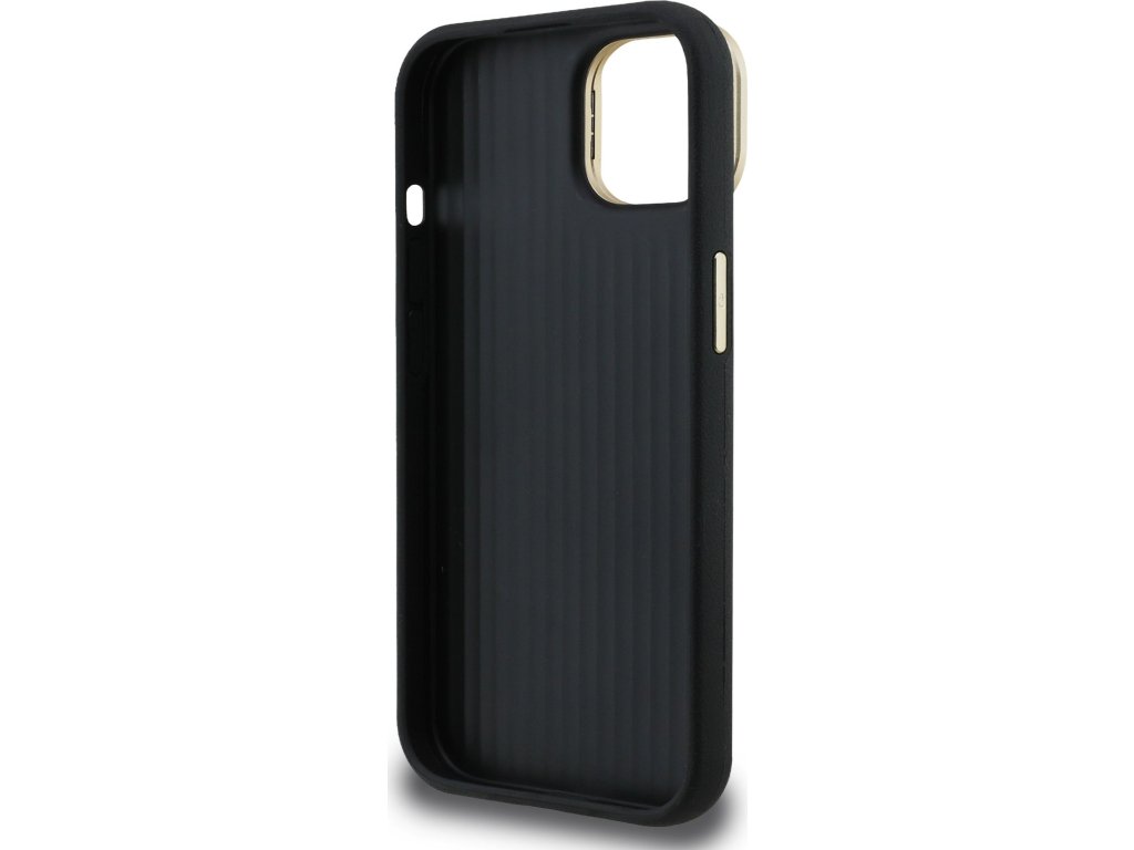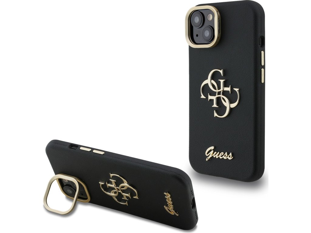 Guess PU Grained 4G Logo Stand Camera Frame Zadní Kryt pro iPhone 13 Black