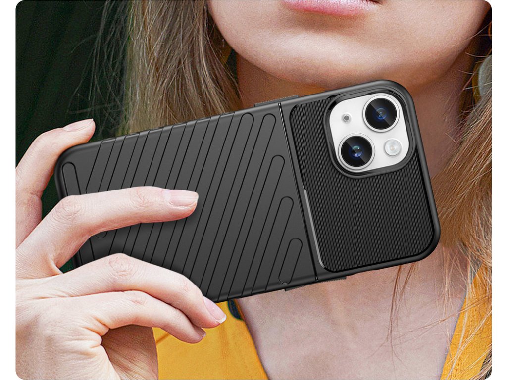 Thunder Case je odolný kryt s elegantní povrchovou úpravou . Je vyroben z vysoce kvalitních materiálů ( TPU ), které dokonale chrání telefon před pády, poškrábáním nebo nečistotami. Tlumí nárazy a speciální struktura uvnitř příslušenství pomáhá rozložit sílu nárazu. Navíc má zvýšené okraje kolem obrazovky a objektivu fotoaparátu a velká, responzivní tlačítka .