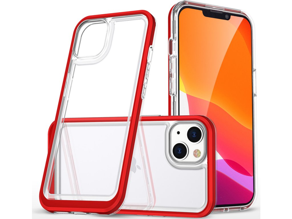 Obrněný kryt na iPhone 14 Plus z řady Clear 3v1 s červeným rámečkem