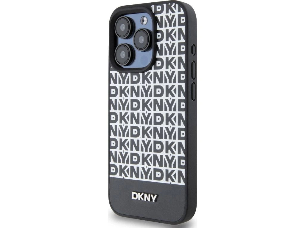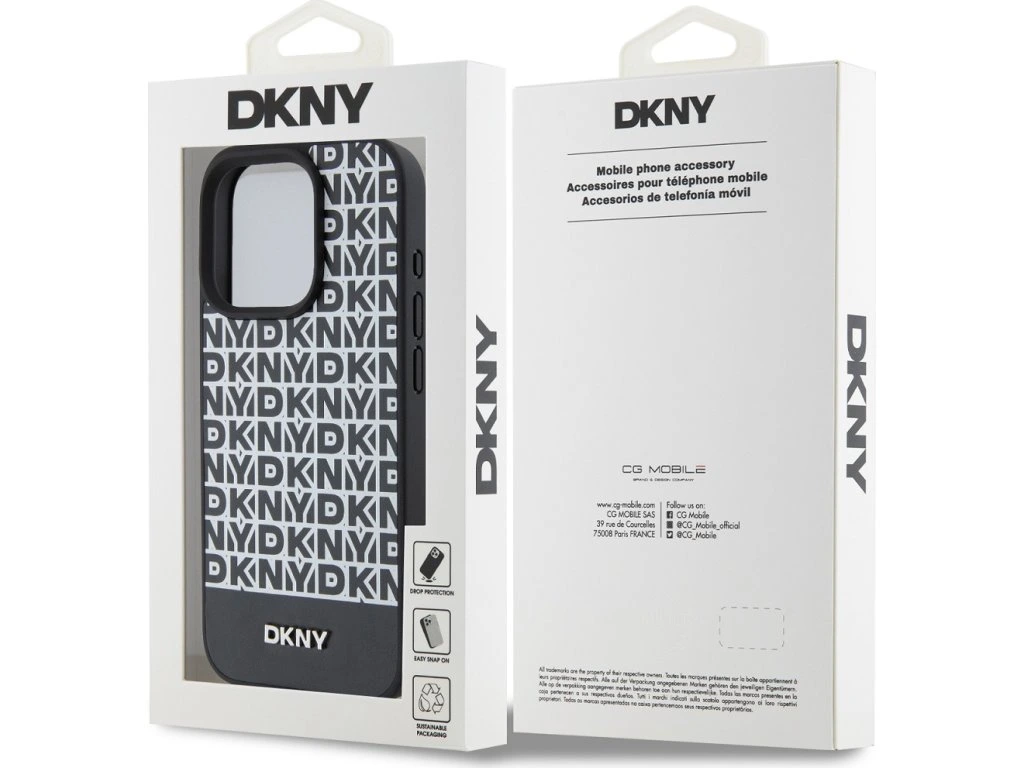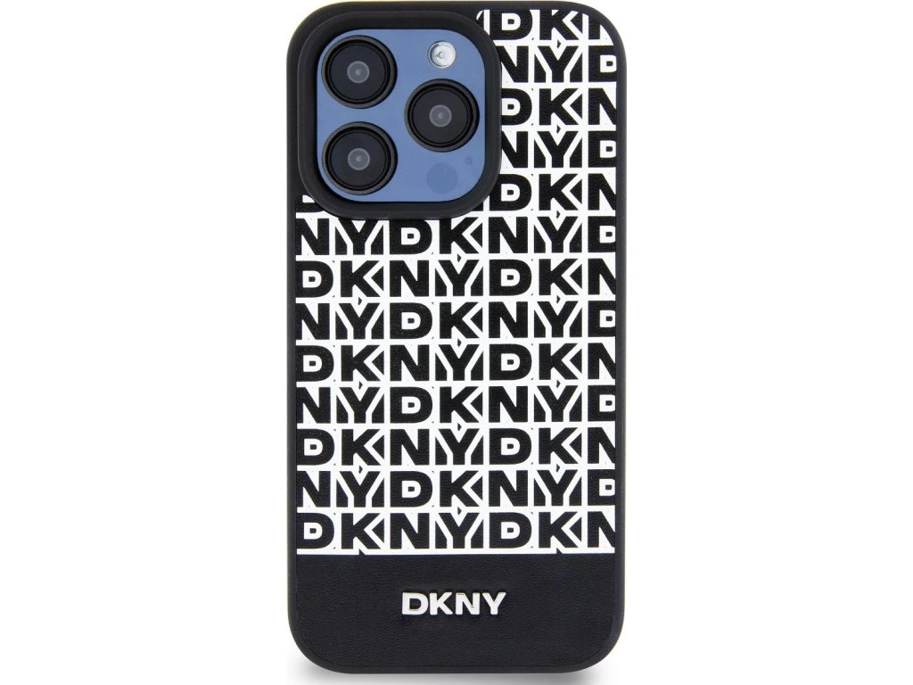 DKNY PU Leather Repeat Pattern Bottom Stripe MagSafe Zadní Kryt pro iPhone 14 Pro Max Black