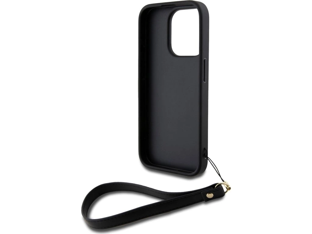 DKNY PU Leather Stack Logo Wrist Strap Zadní Kryt pro iPhone 14 Pro Max Black