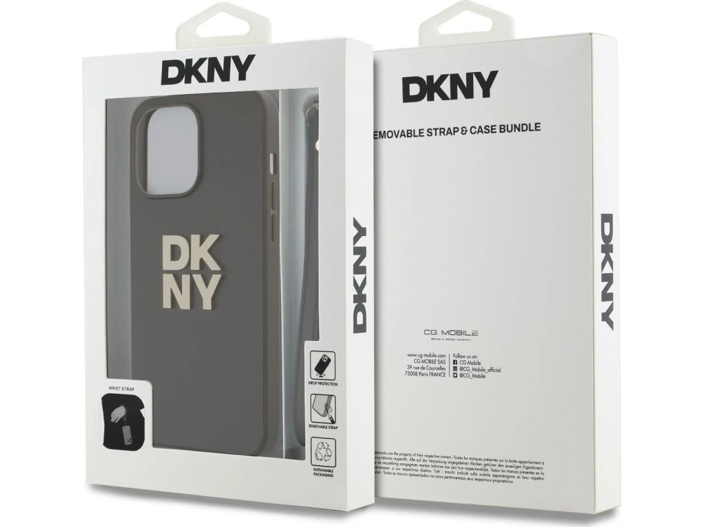 DKNY PU Leather Stack Logo Wrist Strap zadní kryt na telefon je skvělým doplňkem pro všechny milovníky stylu a praktičnosti.