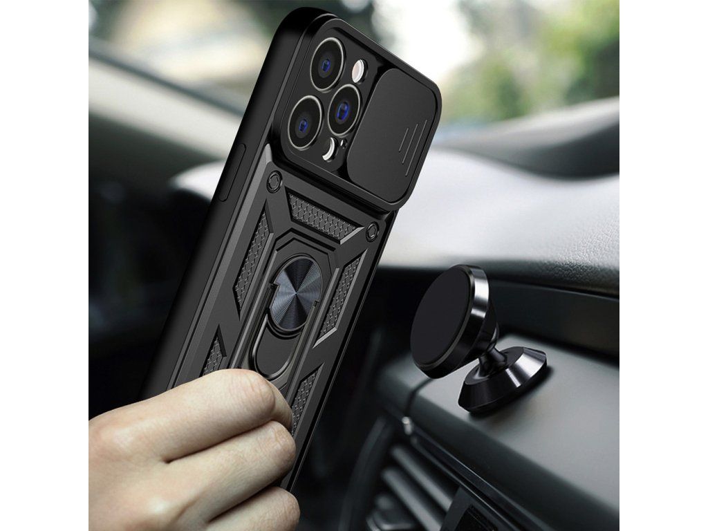 Pouzdro Hybrid Armor Camshield je vyrobeno z termoplastického a odolného materiálu, který vypadá jako ocel. Kryt je přizpůsoben pro iPhone 14 Pro Max a dokonale chrání telefon před poškozením v důsledku pádů nebo poškrábání (například klíči nošenými v kapse). Kryt má posuvný kryt pro zadní kameru. Díky němu je sklo kamery chráněno před poškrábáním. Další výhodou je také pro lidi, kteří si cení soukromí a zabezpečení svých dat. Krytá kamera zabraňuje přístupu k nahrávání videa v případě, že někdo získá vzdálený přístup k telefonu a zapne náhled z hlavní kamery. Vyvýšené okraje kolem obrazovky chrání před poškrábáním, když je umístěno na rovném povrchu. Má vestavěný kovový kroužek, který umožňuje pohodlné používání telefonu jednou rukou a funguje také jako stojánek. Vestavěná kovová destička umožňuje připevnění k magnetickým držákům do auta. Má responzivní tlačítka a výřezy pro porty. Ideální pro lidi, kteří si cení stylu, kvality a chtějí se o své zařízení starat.