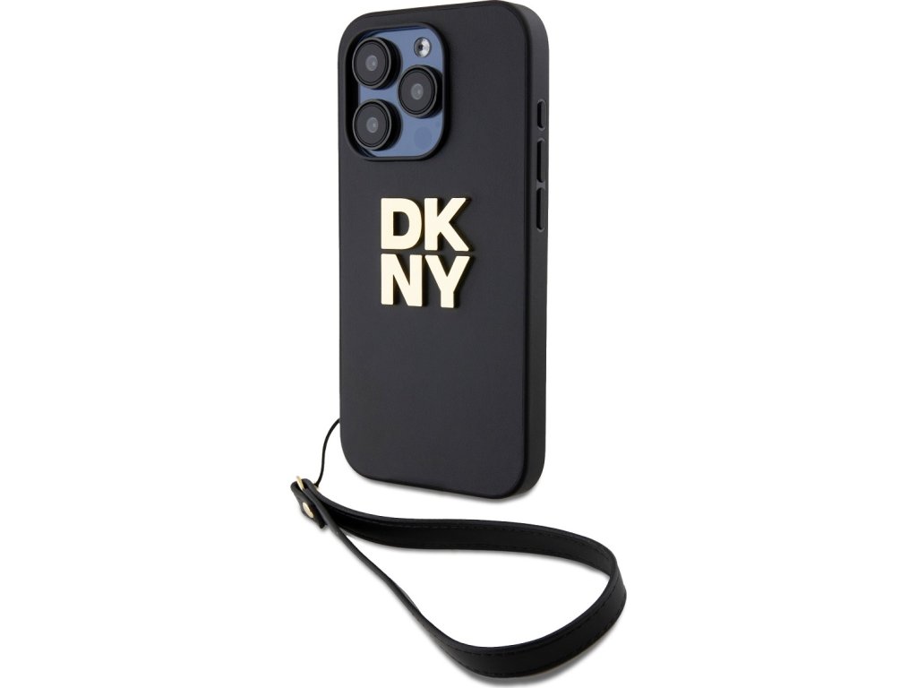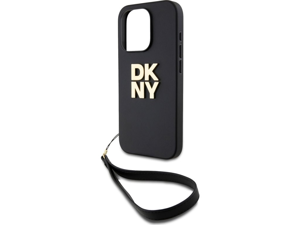 DKNY PU Leather Stack Logo Wrist Strap Zadní Kryt pro iPhone 14 Pro Black