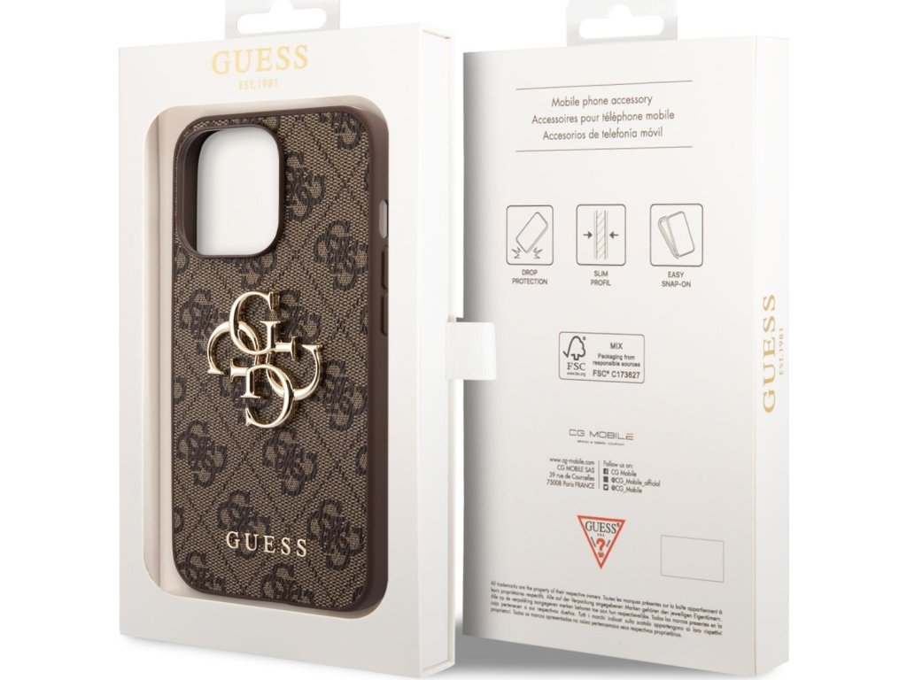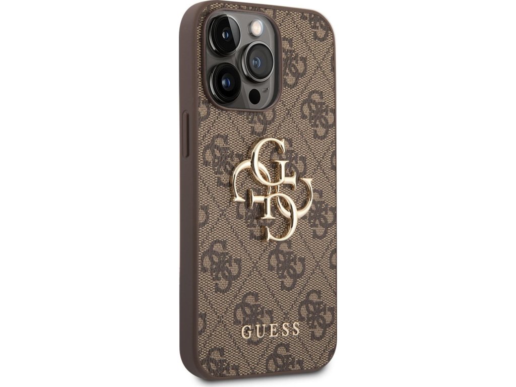 Guess PU 4G Metal Logo Zadní Kryt pro iPhone 14 Pro Brown