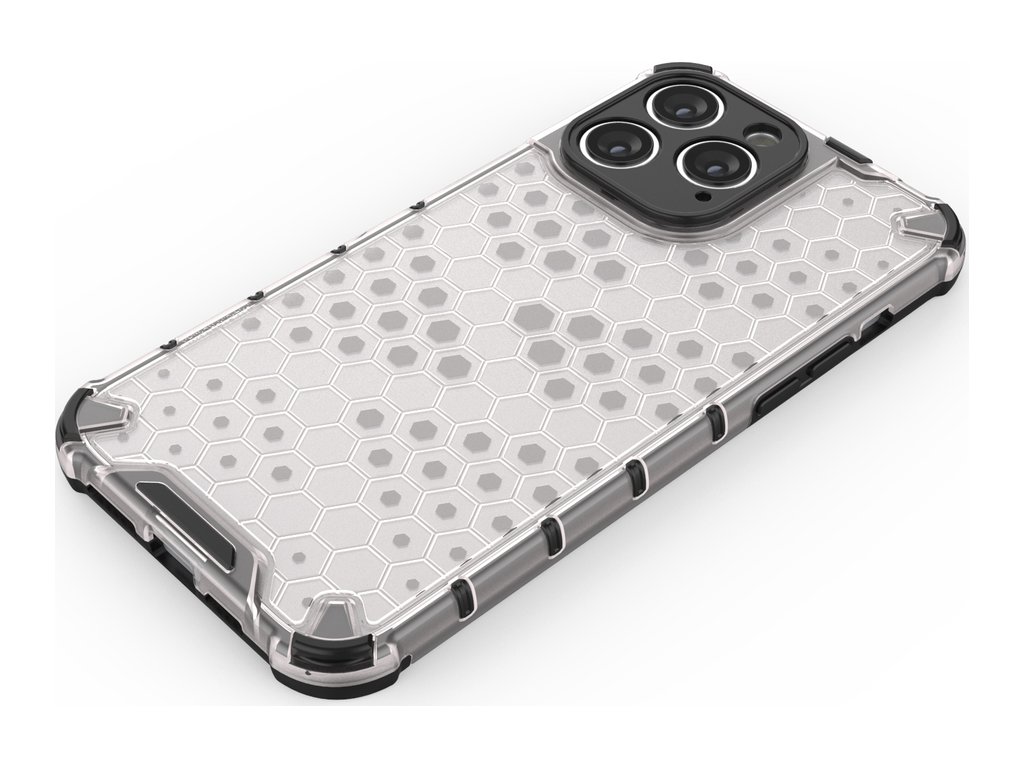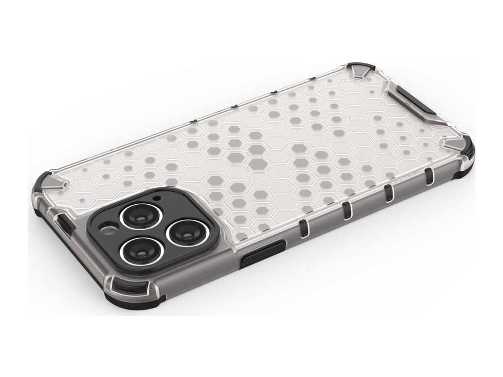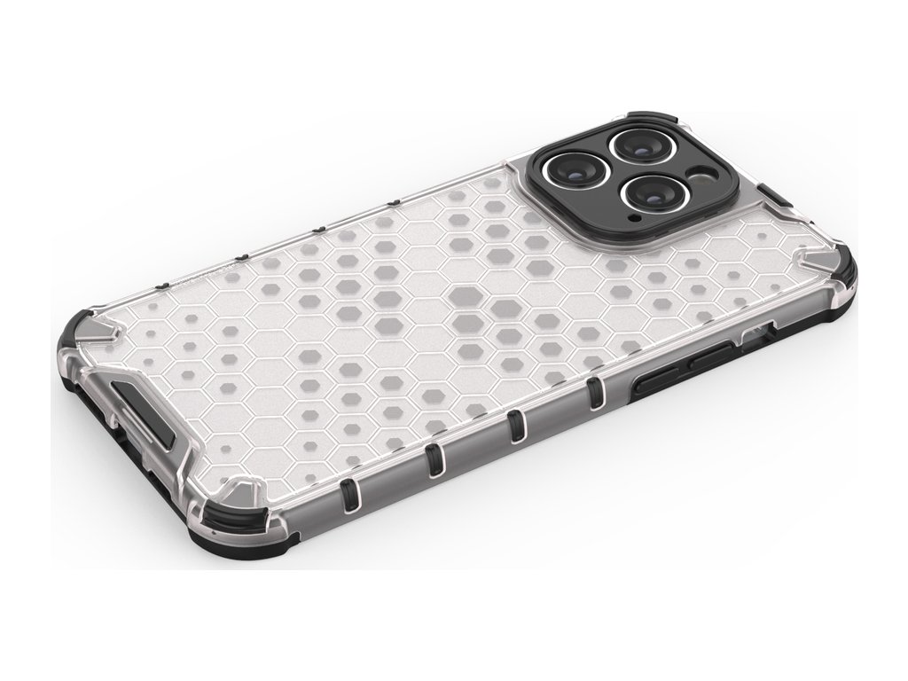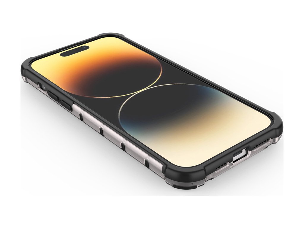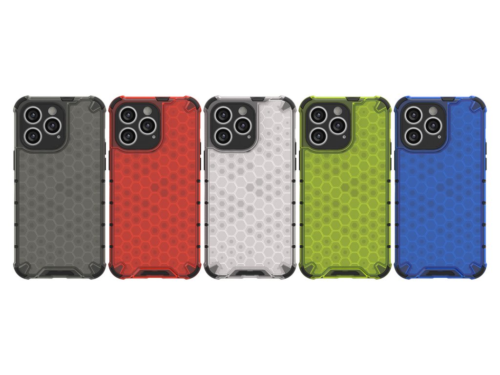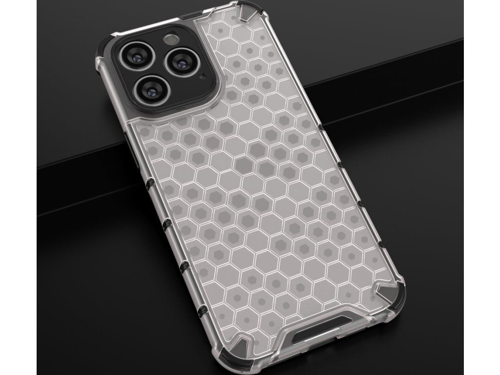 Pouzdro řady Honeycomb Je vyroben z termoplastického a odolného materiálu, který je uspořádán do tvaru včelí plástve. Kryt je přizpůsoben pro iPhone 14 Pro a dokonale chrání telefon před poškozením v důsledku pádů nebo poškrábání (například klíči nošenými v kapse). Zvýšené okraje kolem obrazovky a zadního fotoaparátu chrání telefon před poškrábáním těchto prvků, když je umístěn na rovném povrchu. Má responzivní tlačítka a výřezy pro porty. Ideální pro lidi, kteří si cení stylu, kvality a chtějí se o své zařízení starat.