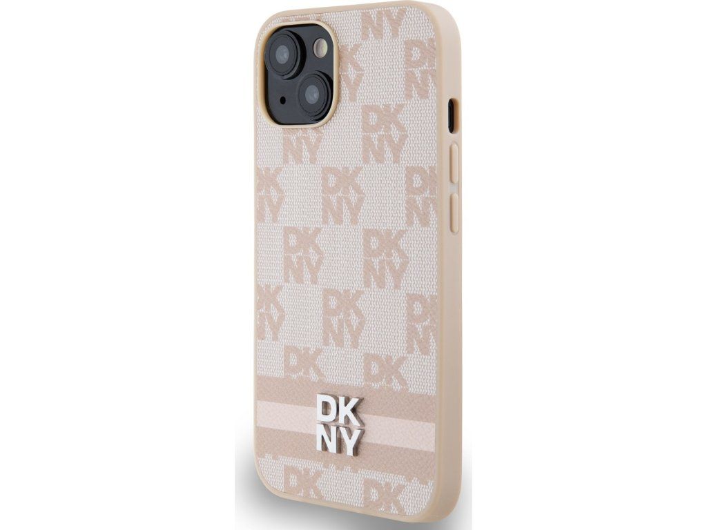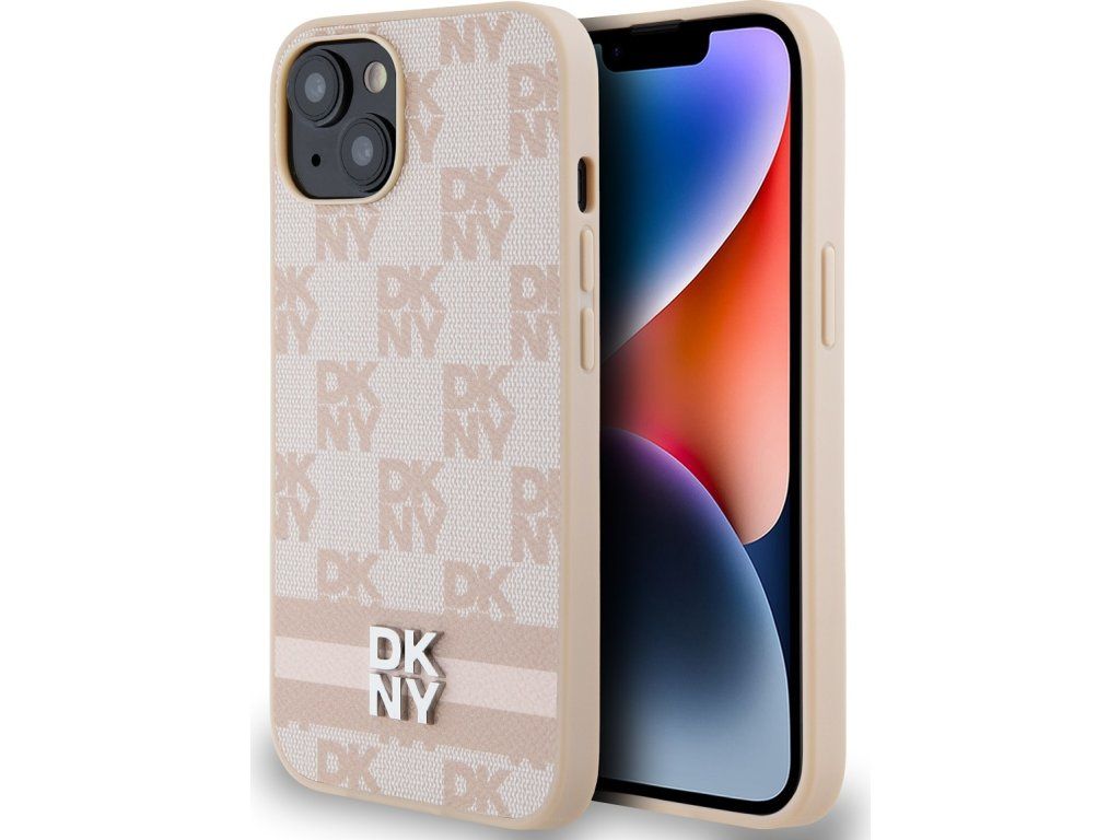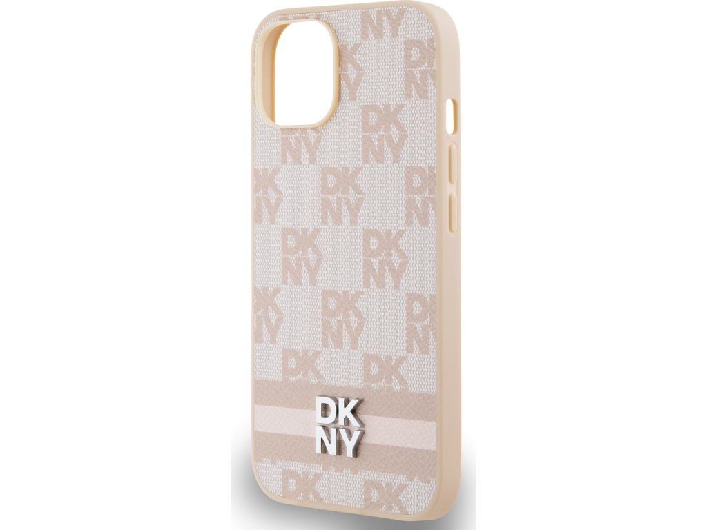 DKNY PU Leather Checkered Pattern and Stripe Zadní Kryt pro iPhone 14 Pink