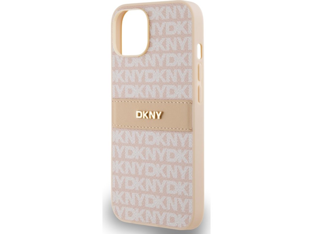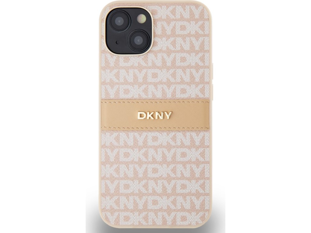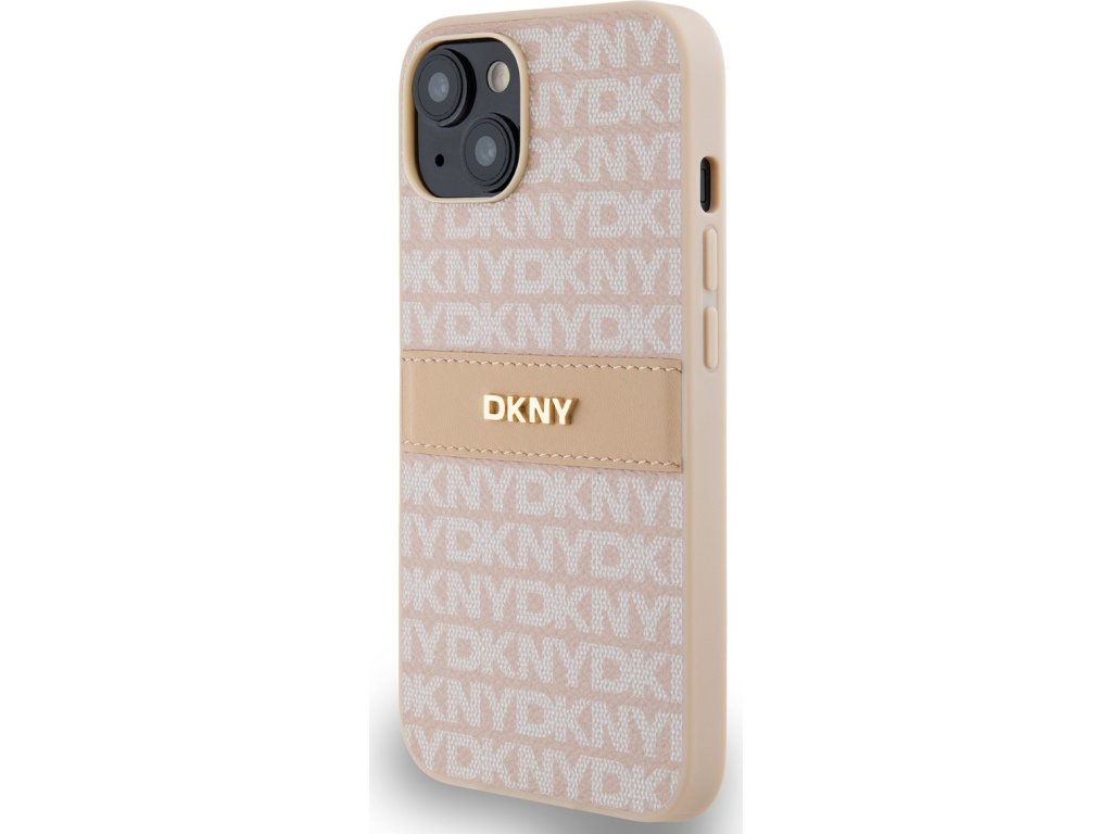 DKNY PU Leather Repeat Pattern Tonal Stripe Zadní Kryt pro iPhone 14 Pink