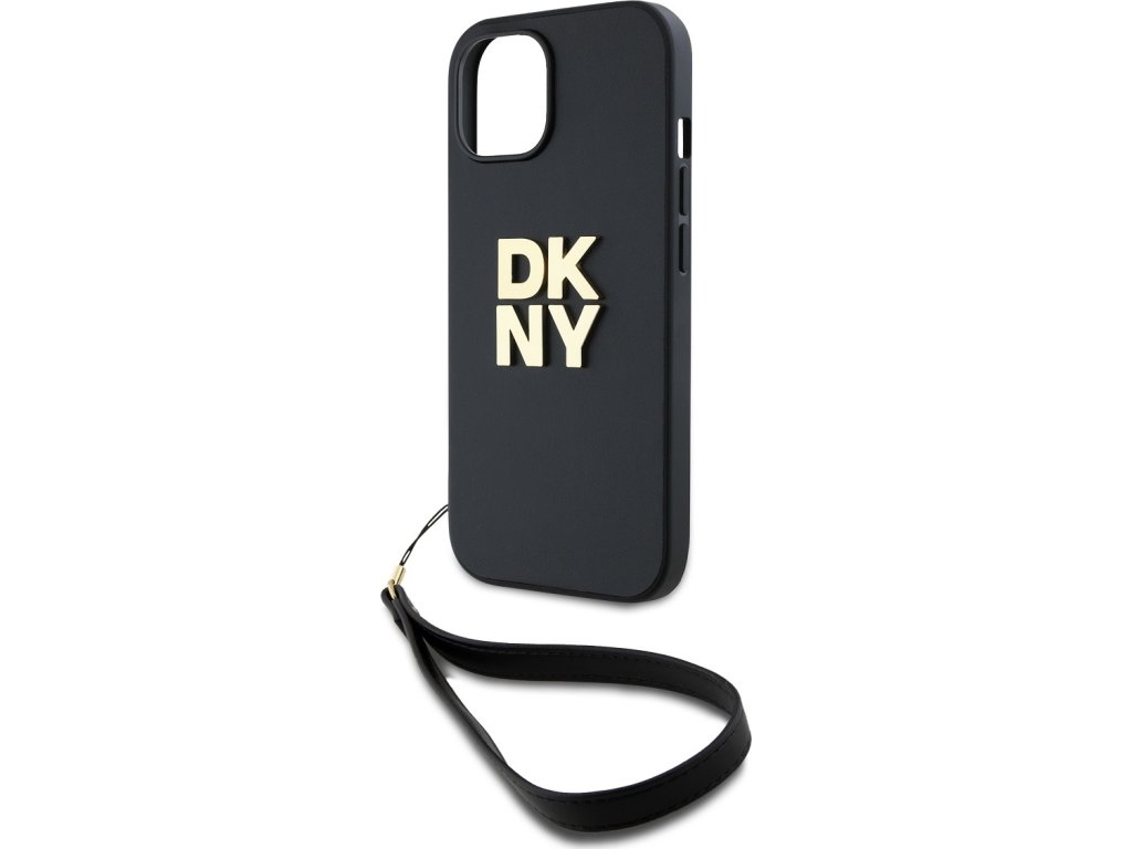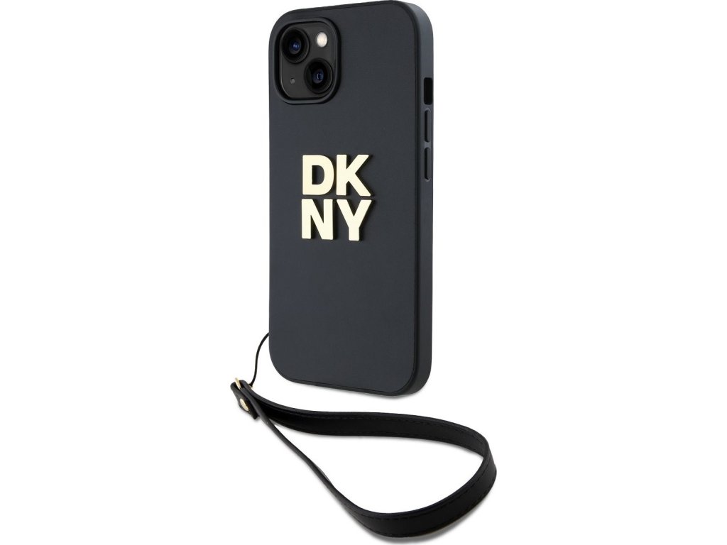 DKNY PU Leather Stack Logo Wrist Strap Zadní Kryt pro iPhone 14 Black