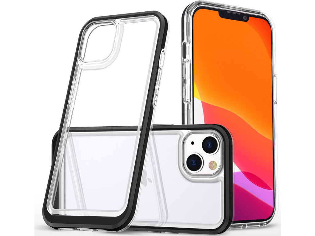 Průhledný silikonový kryt 3v1 pro iPhone 14 s černým rámem