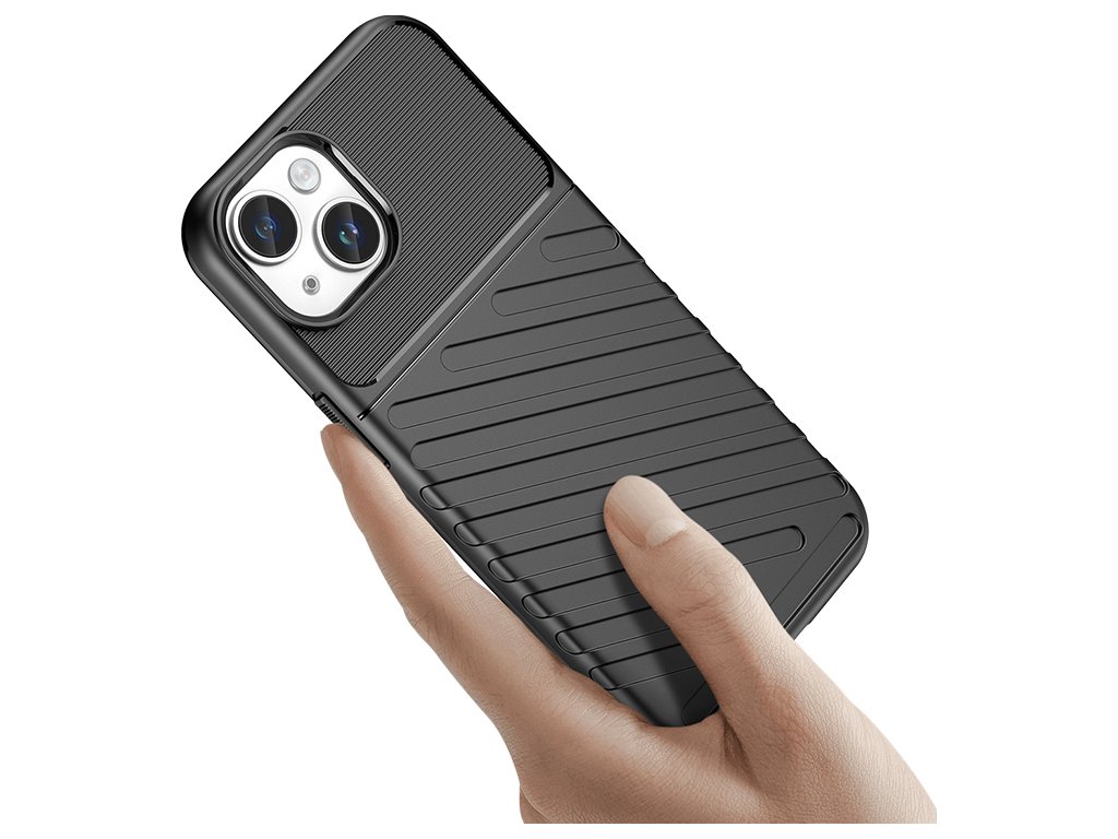 Obrněný kryt na iPhone 15 Plus ze série Thunder Case v černé barvě