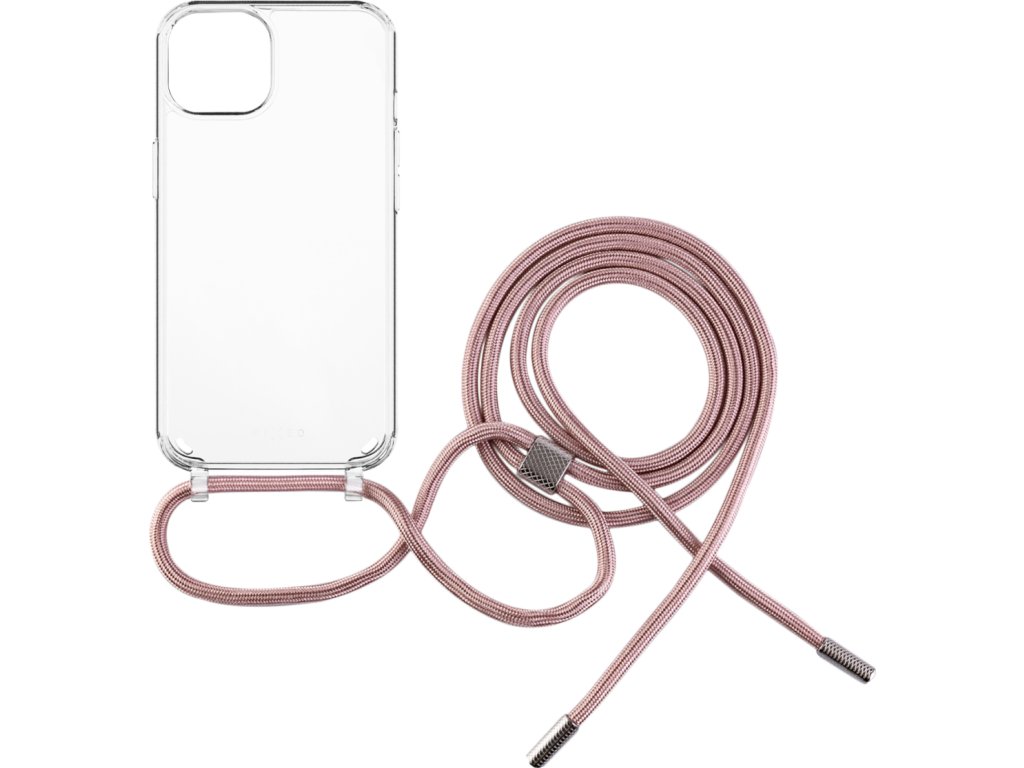 Pouzdro FIXED Pure Neck s růžovou šňůrkou na krk pro Apple iPhone 15 Plus