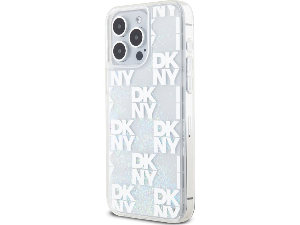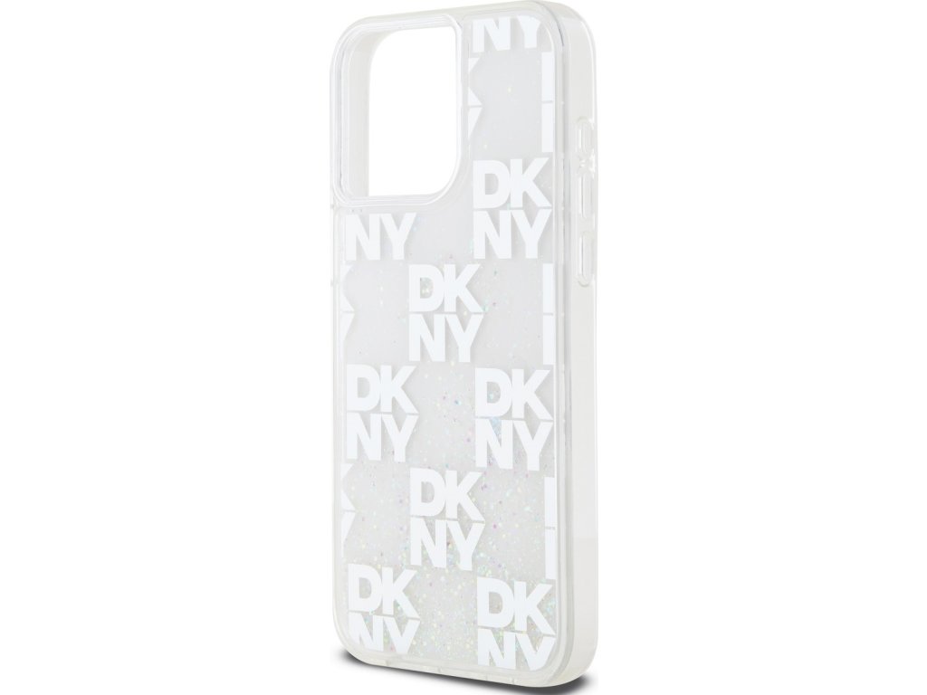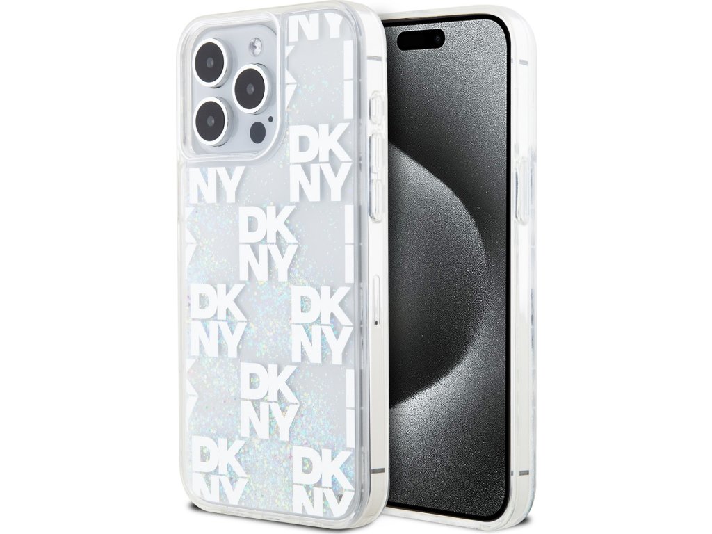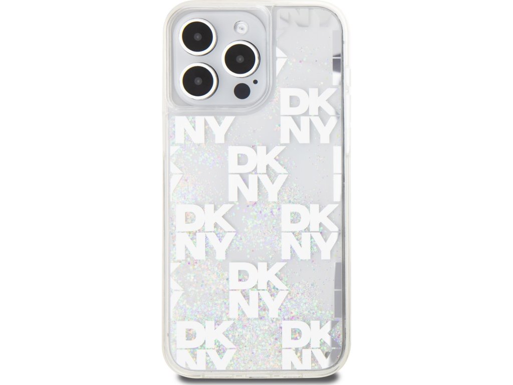 DKNY Liquid Glitter Checkered Pattern Zadní Kryt pro iPhone 15 Pro Max Transparent