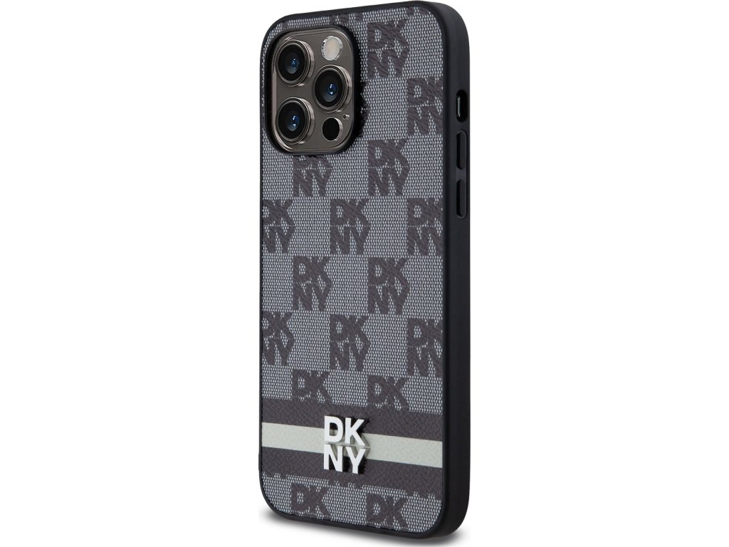 DKNY PU Leather Checkered Pattern and Stripe Zadní Kryt pro iPhone 15 Pro Max Black