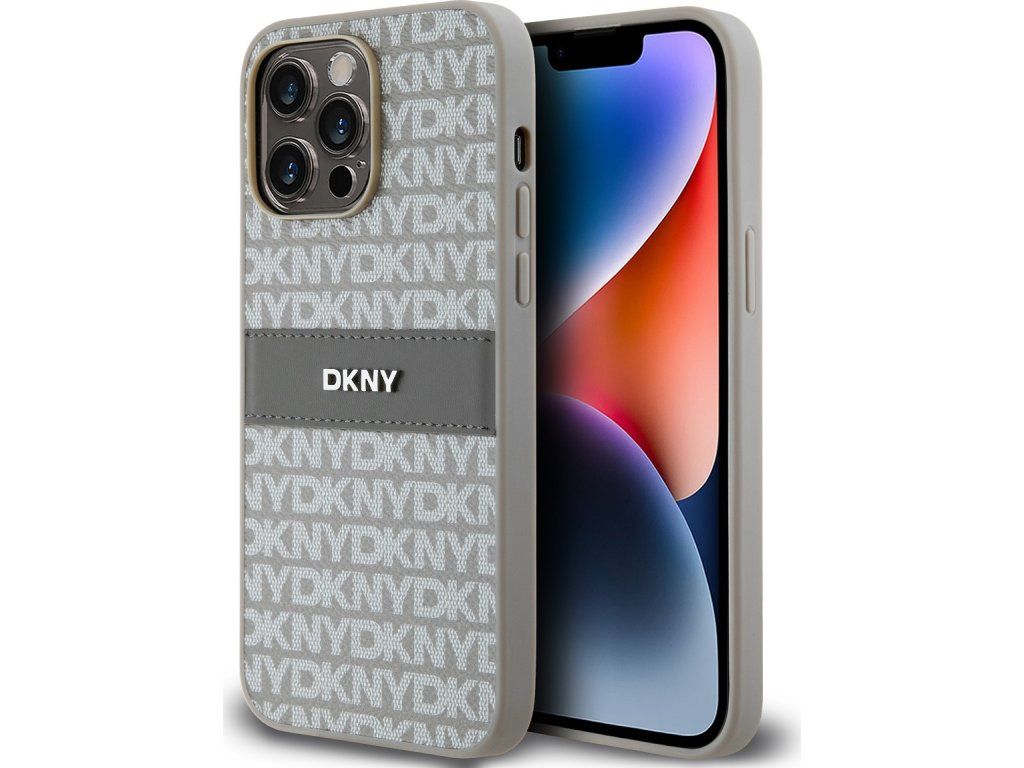 DKNY PU Leather Repeat Pattern Tonal Stripe Zadní Kryt pro iPhone 15 Pro Max Beige