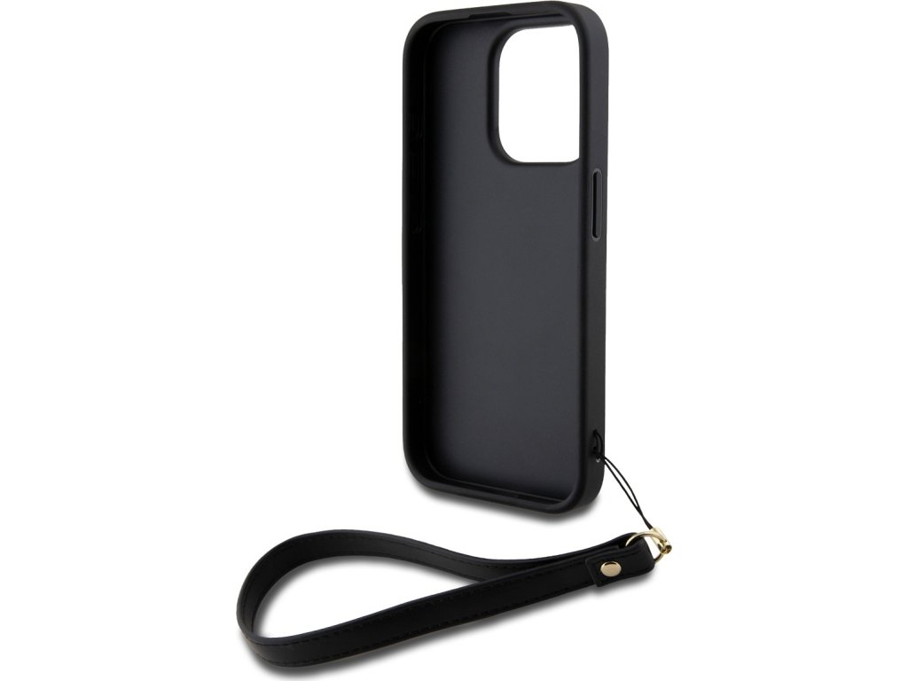 DKNY PU Leather Stack Logo Wrist Strap Zadní Kryt pro iPhone 15 Pro Max Black