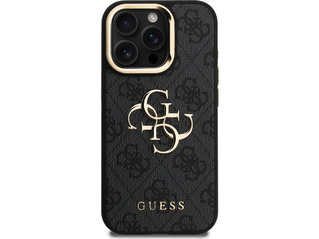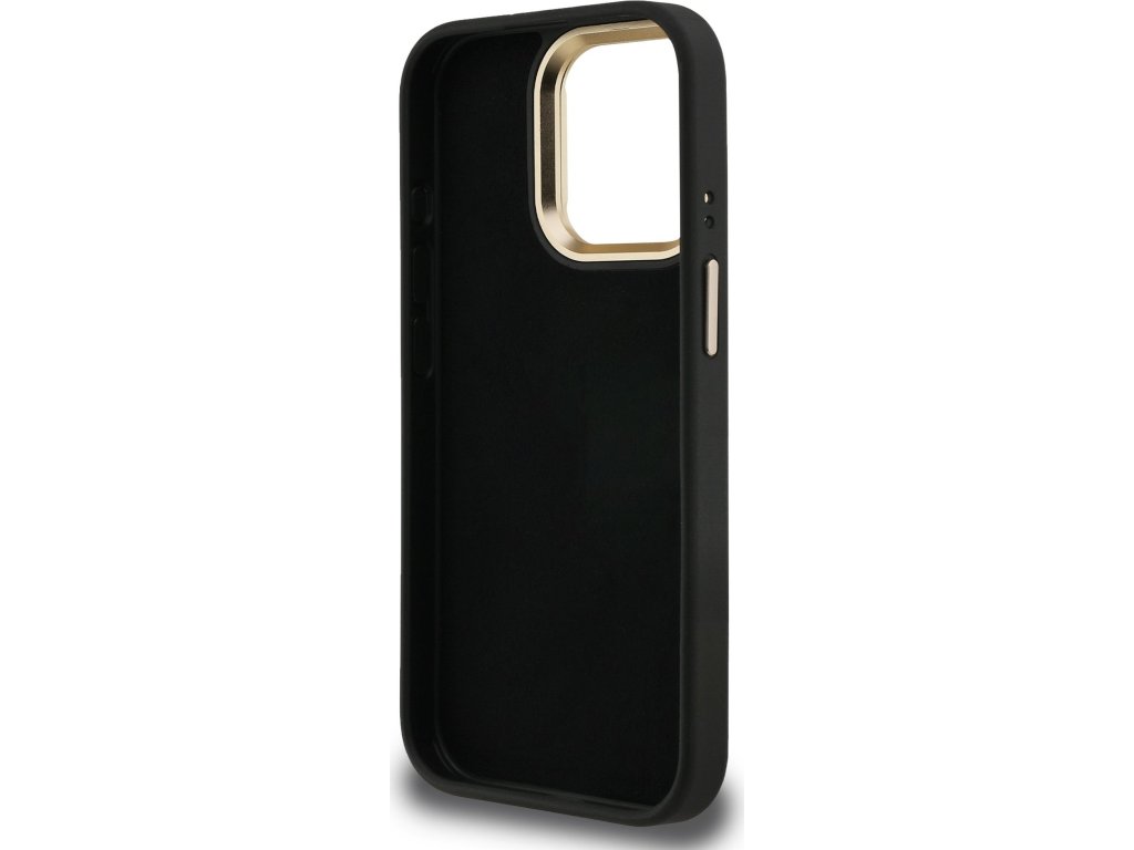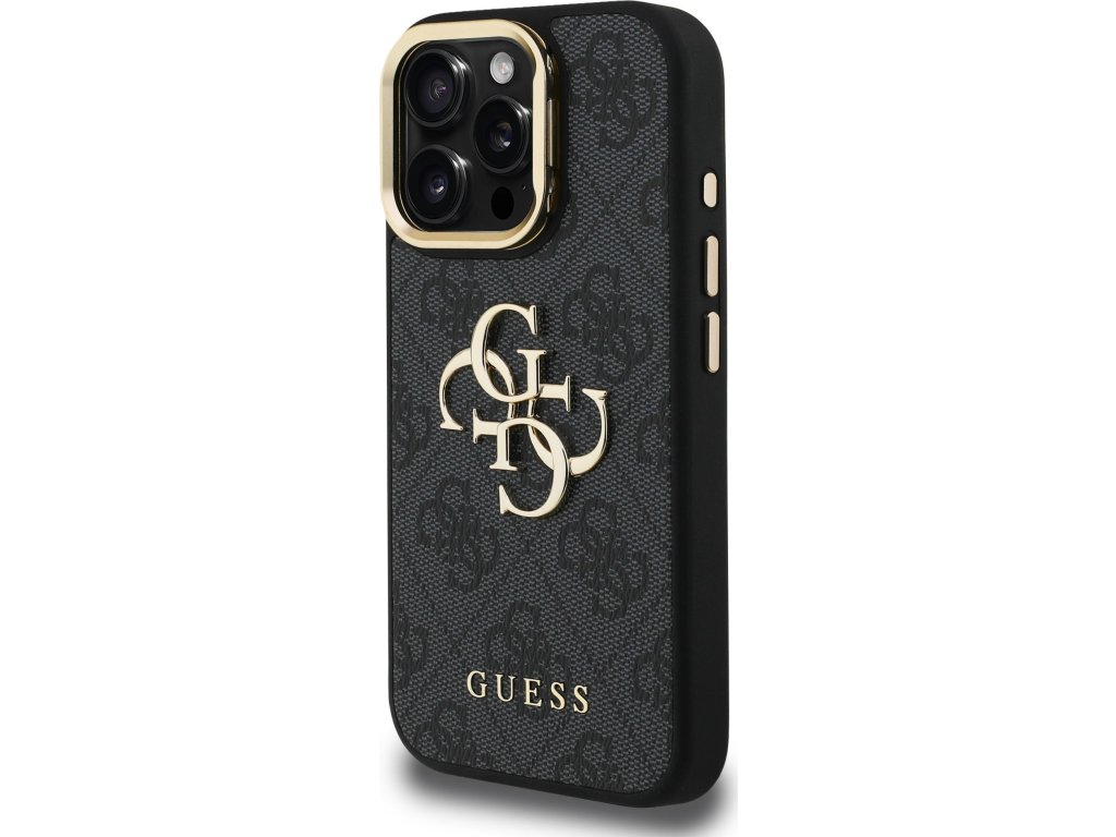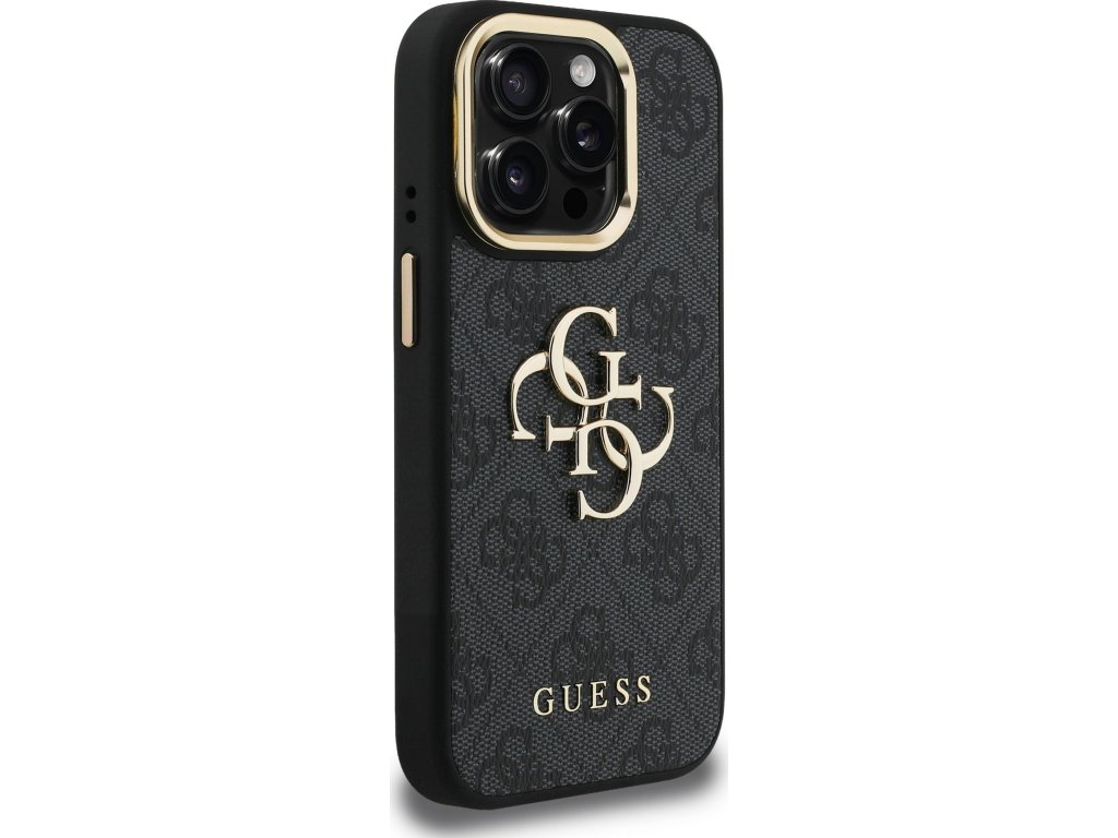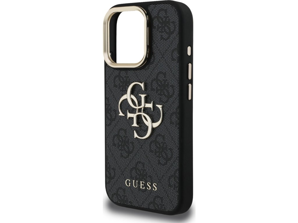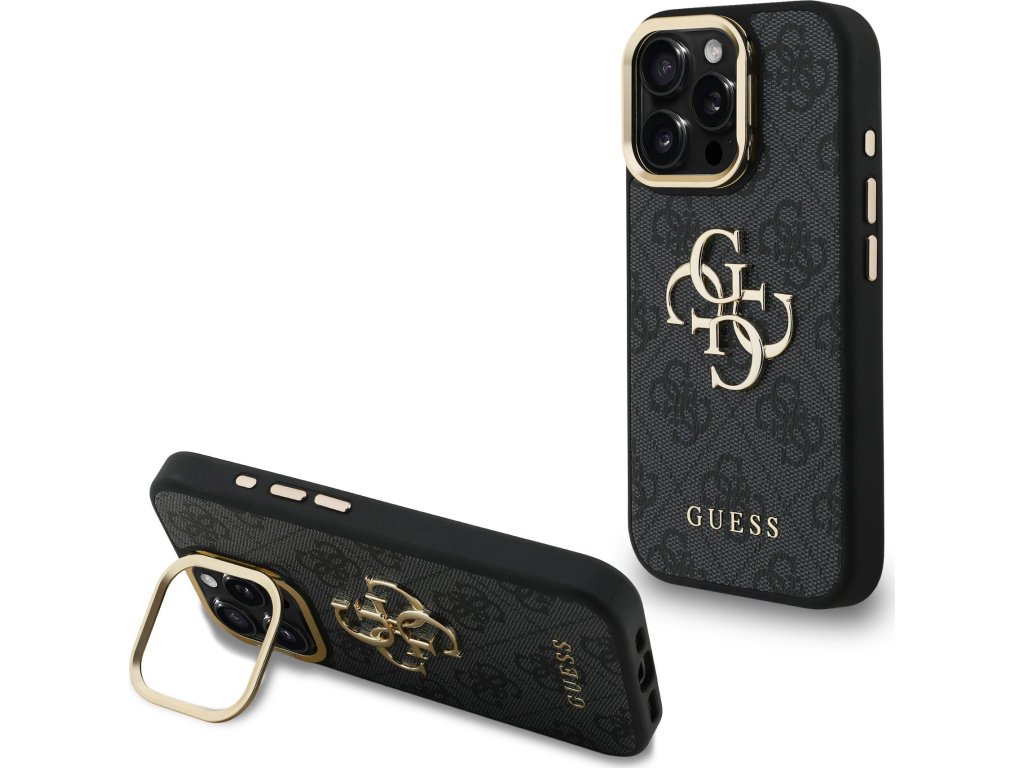 Guess PU 4G Metal Logo Stand Camera Frame Zadní Kryt pro iPhone 15 Pro Max Black