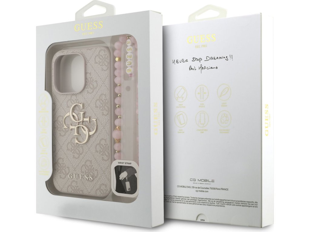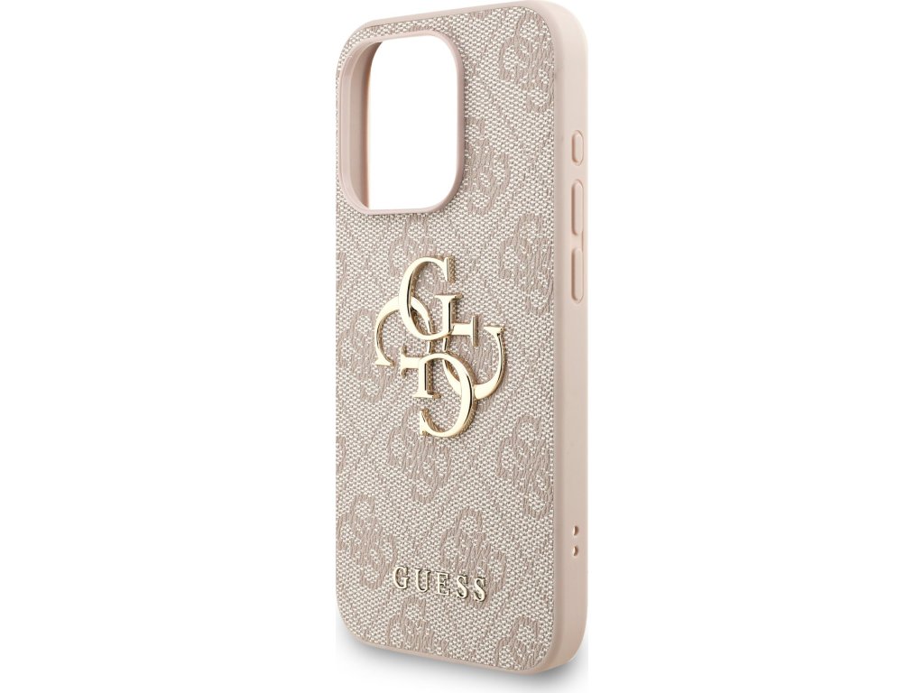 Guess PU 4G Metal Logo Strap Zadní Kryt pro iPhone 15 Pro Max Pink
