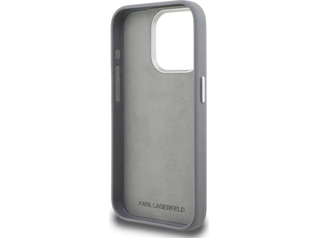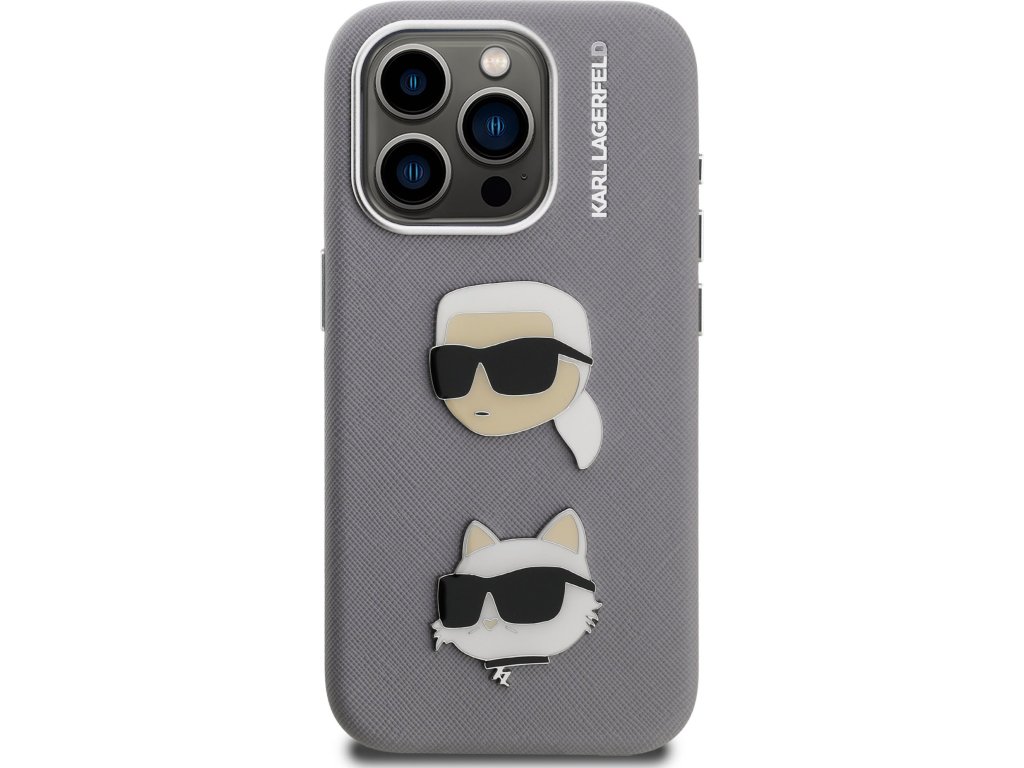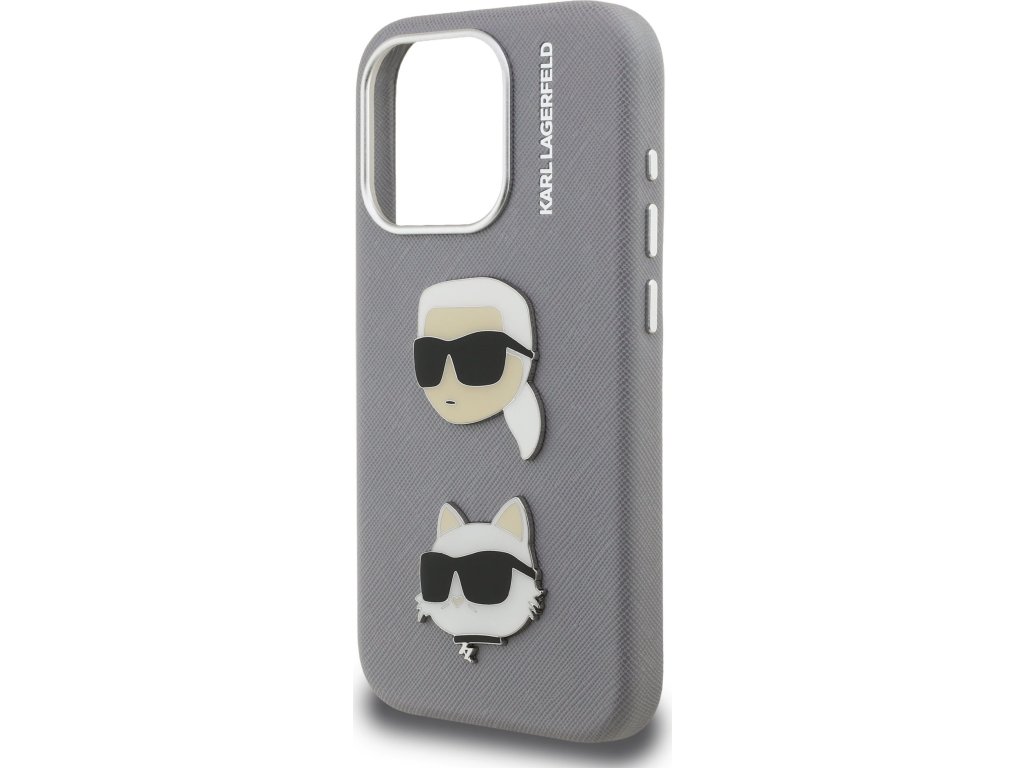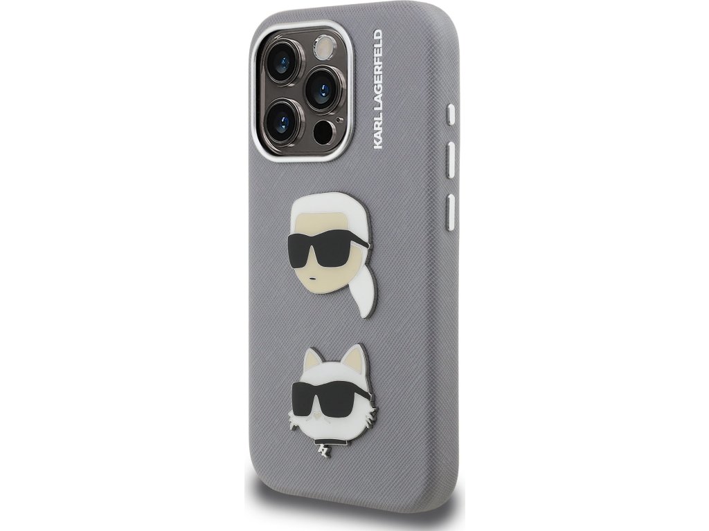 Karl Lagerfeld Grained PU K&CH Heads Zadní Kryt pro iPhone 15 Pro Max Grey