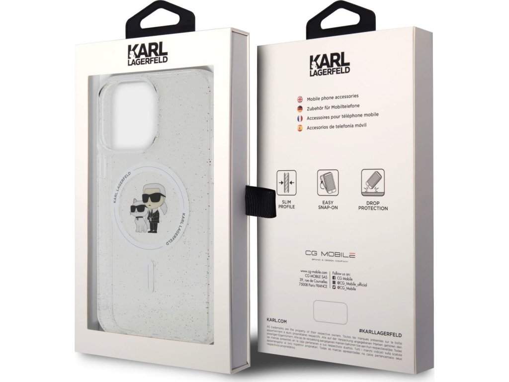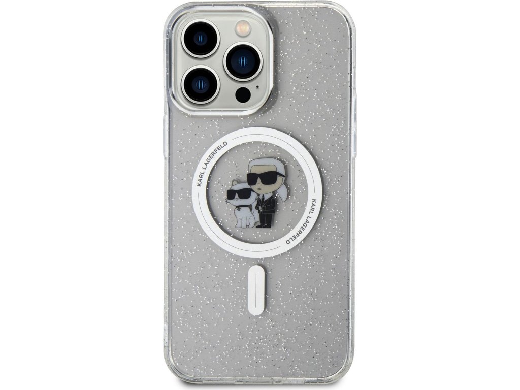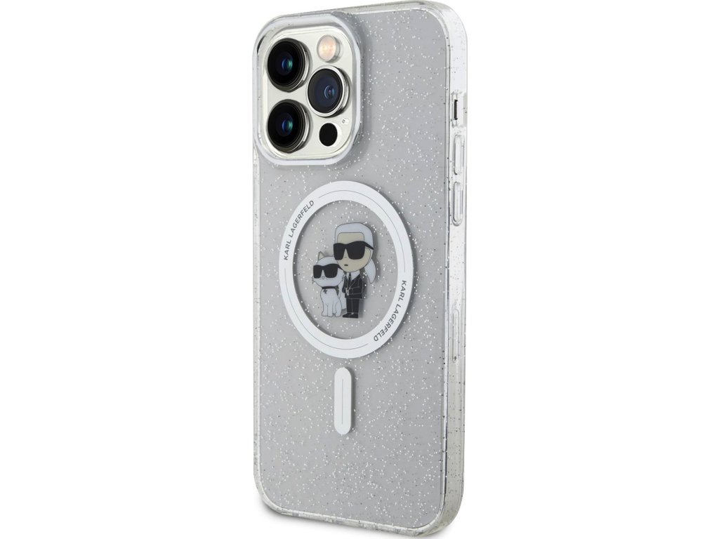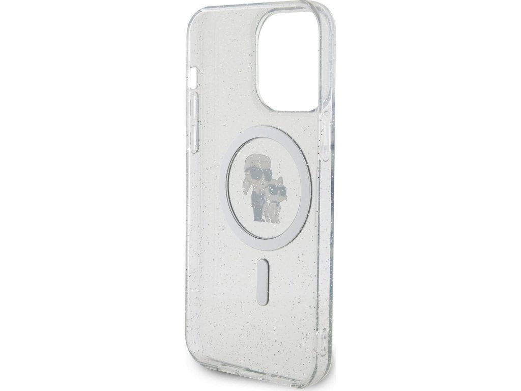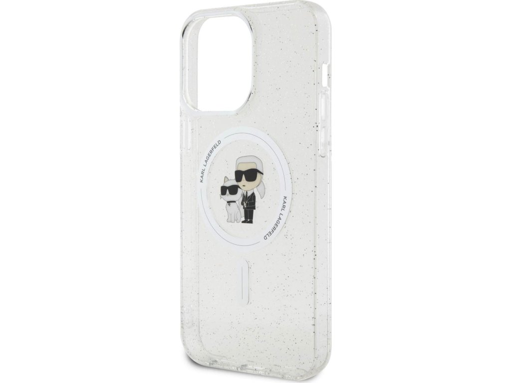 Karl Lagerfeld IML Glitter Karl and Choupette MagSafe Zadní Kryt pro iPhone 15 Pro Max Transparent