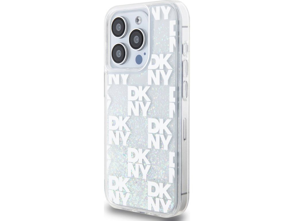 DKNY Liquid Glitter Checkered Pattern Zadní Kryt pro iPhone 15 Pro Transparent