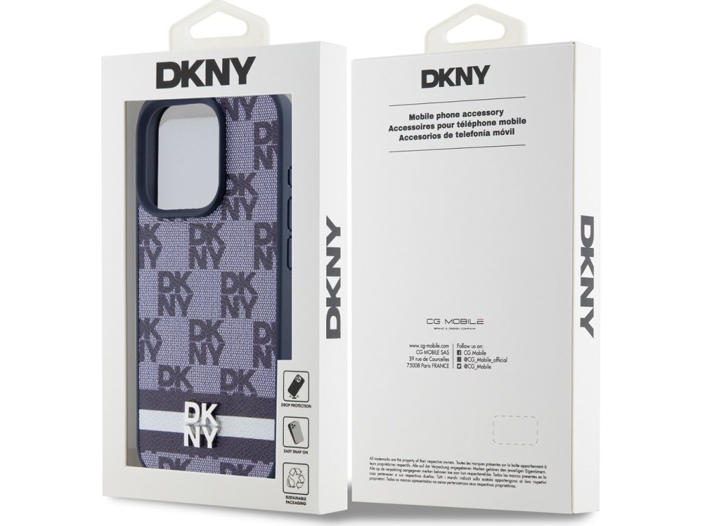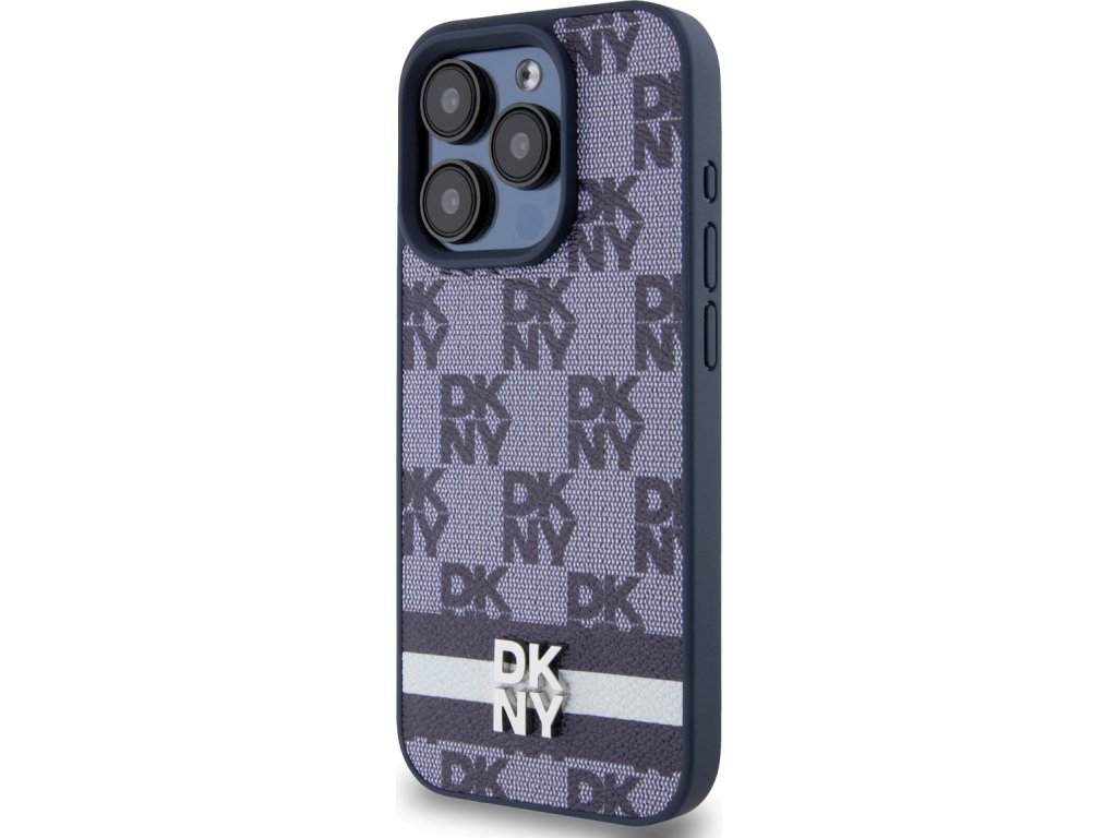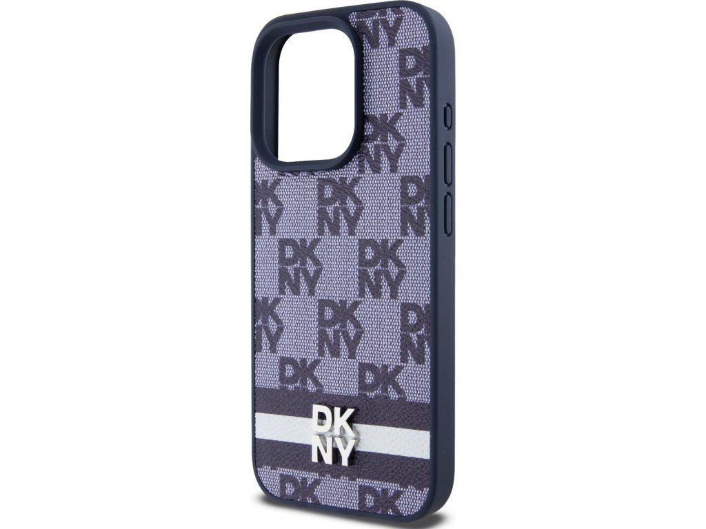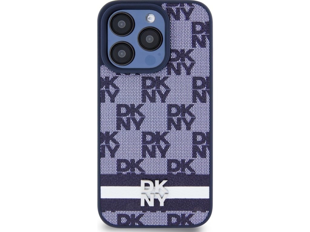 DKNY PU Leather Checkered Pattern and Stripe Zadní Kryt pro iPhone 15 Pro Blue