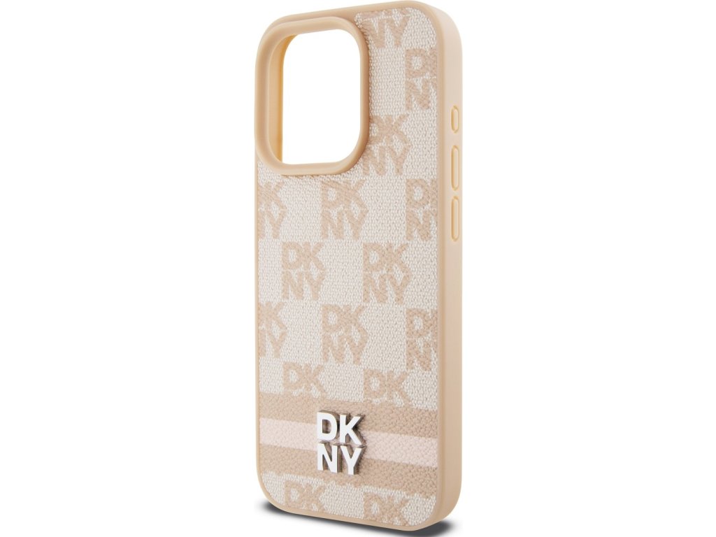 DKNY PU Leather Repeat Pattern Stack Logo MagSafe zadní kryt je dokonalý doplněk pro váš telefon i váš outfit, který kombinuje funkčnost a styl v jednom.
