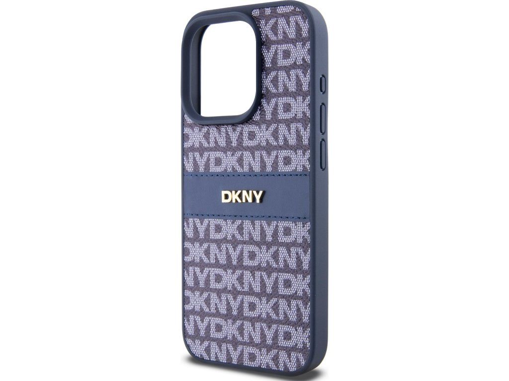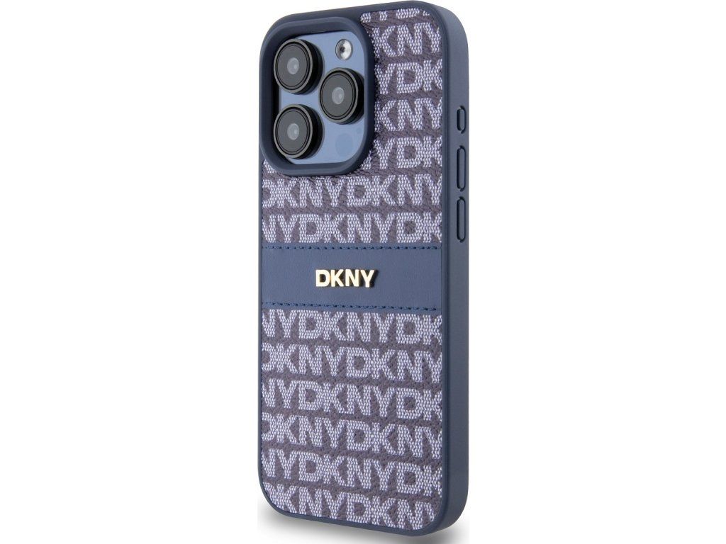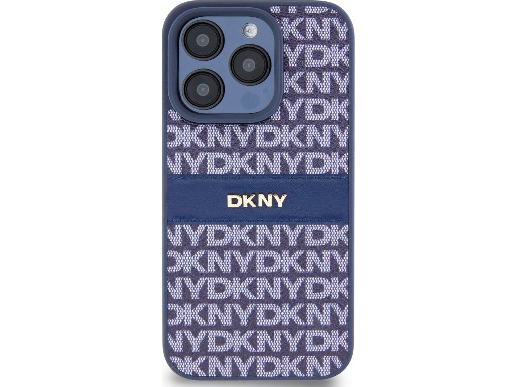 DKNY PU Leather Repeat Pattern Tonal Stripe Zadní Kryt pro iPhone 15 Pro Blue