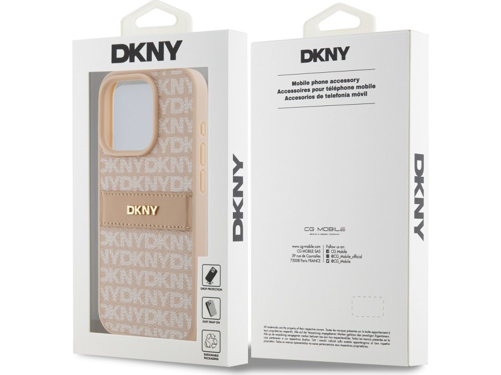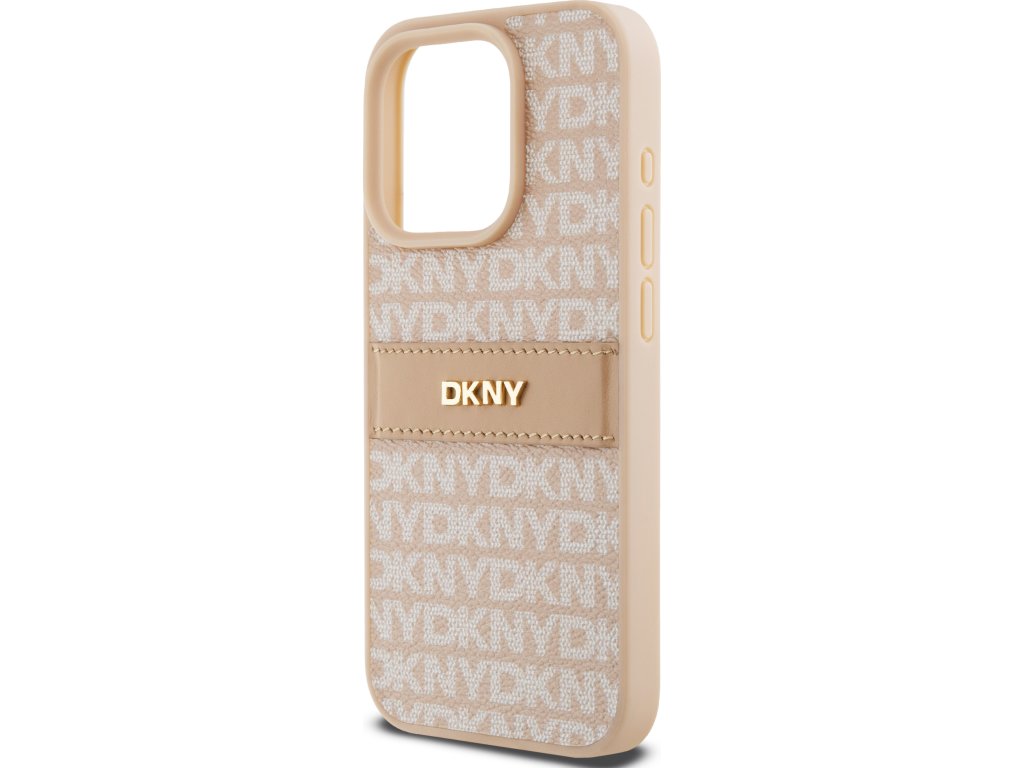 DKNY PU Leather Repeat Pattern Tonal Stripe Zadní Kryt pro iPhone 15 Pro Pink