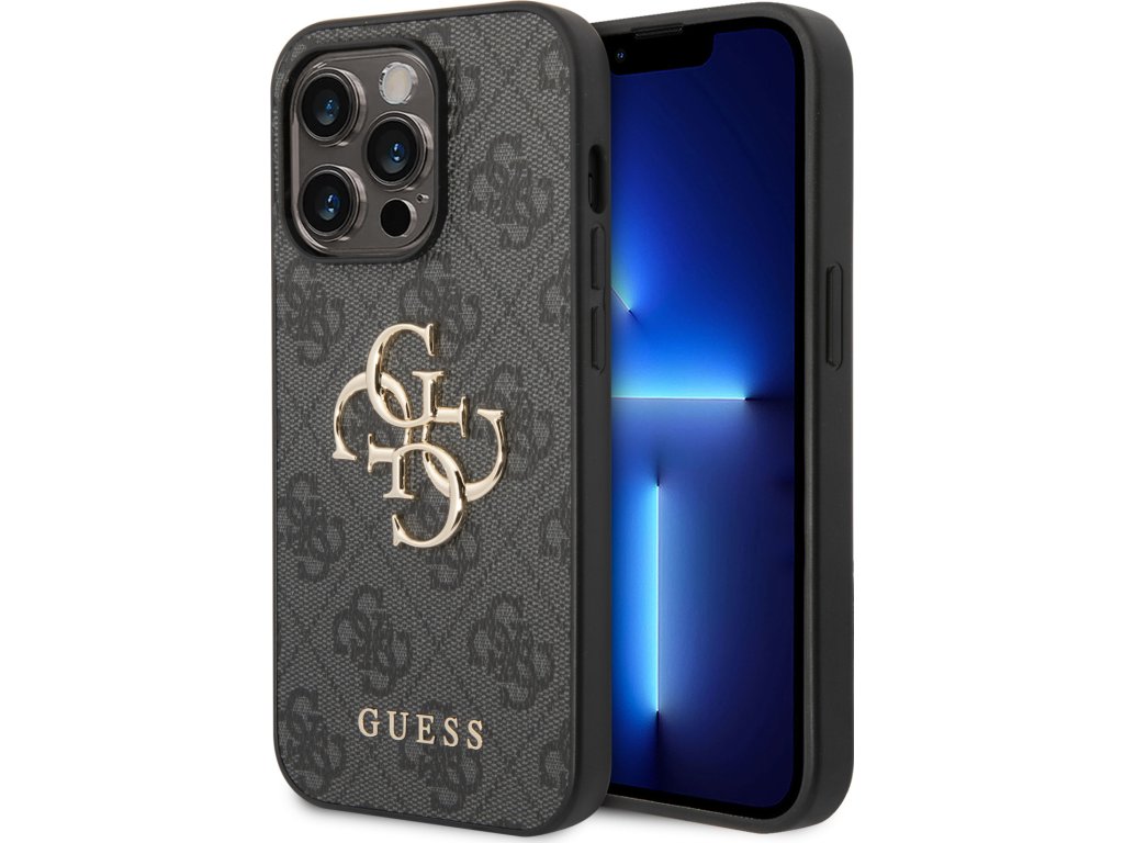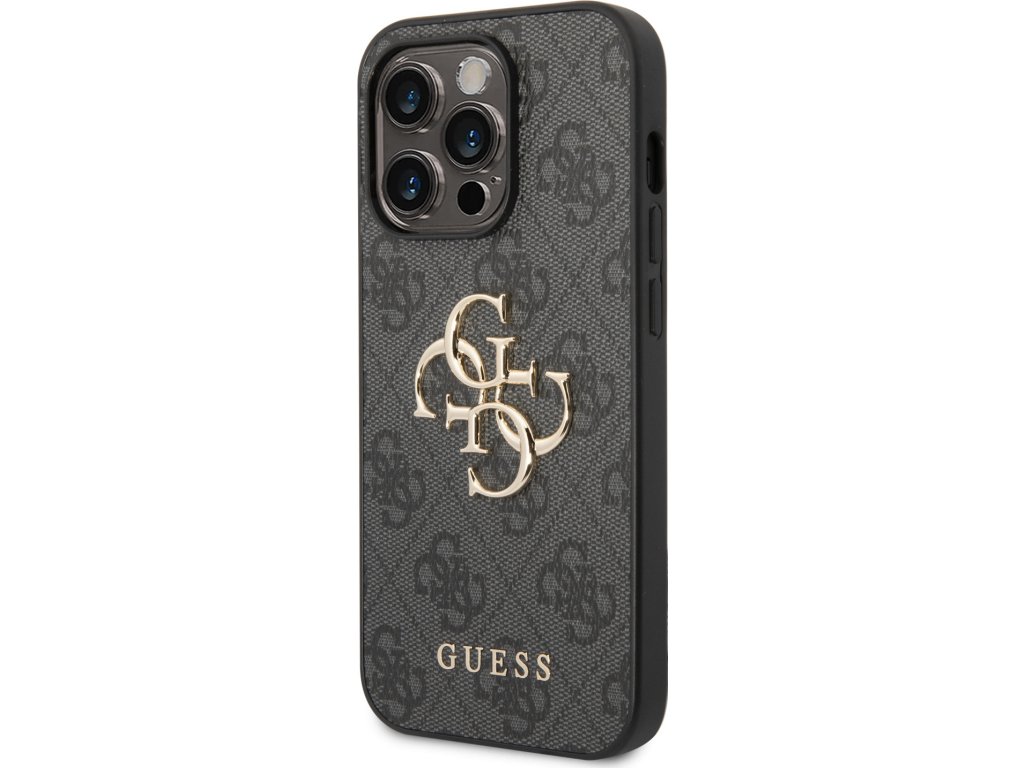 Guess PU 4G Metal Logo Zadní Kryt pro iPhone 15 Pro Grey